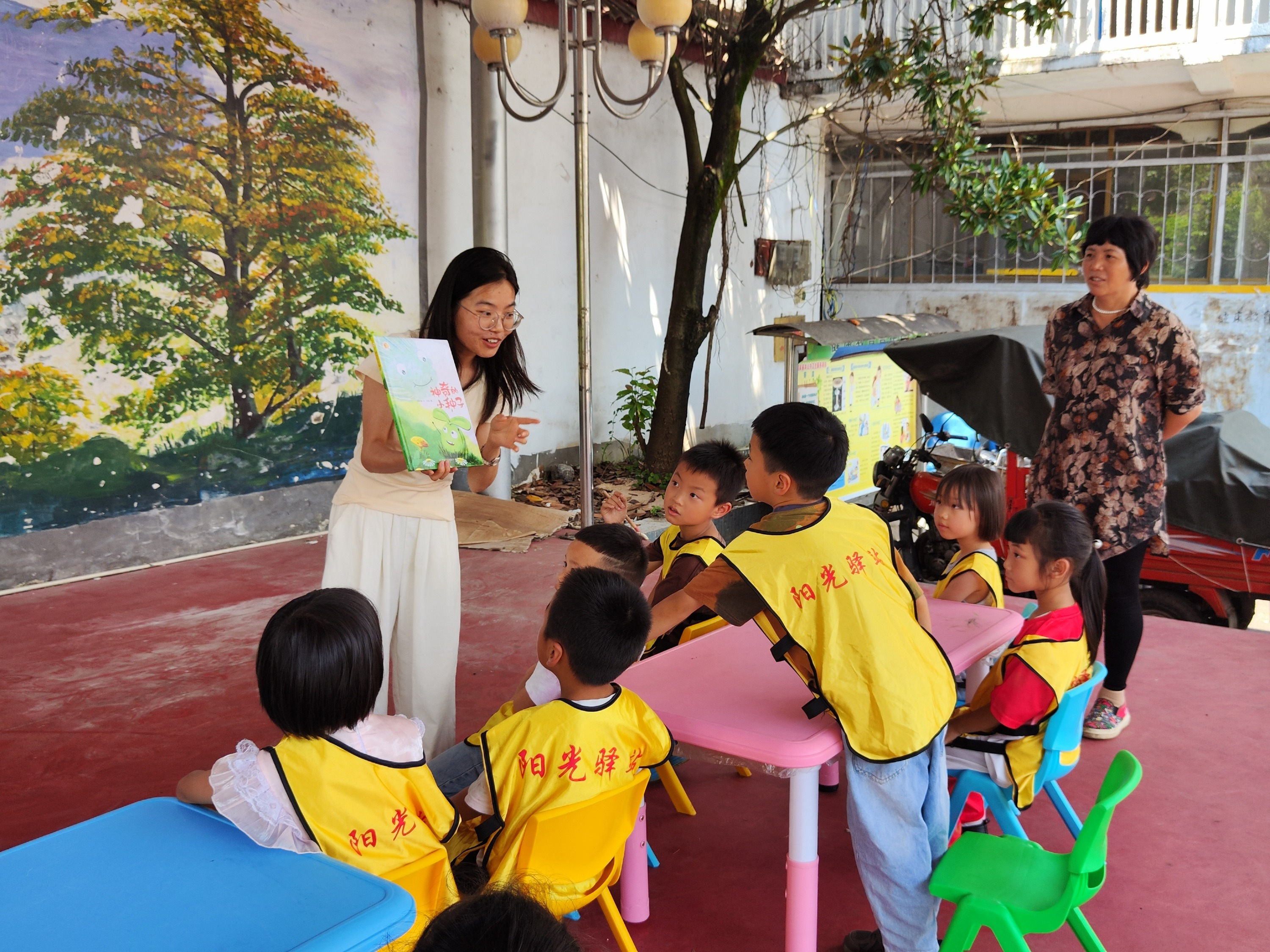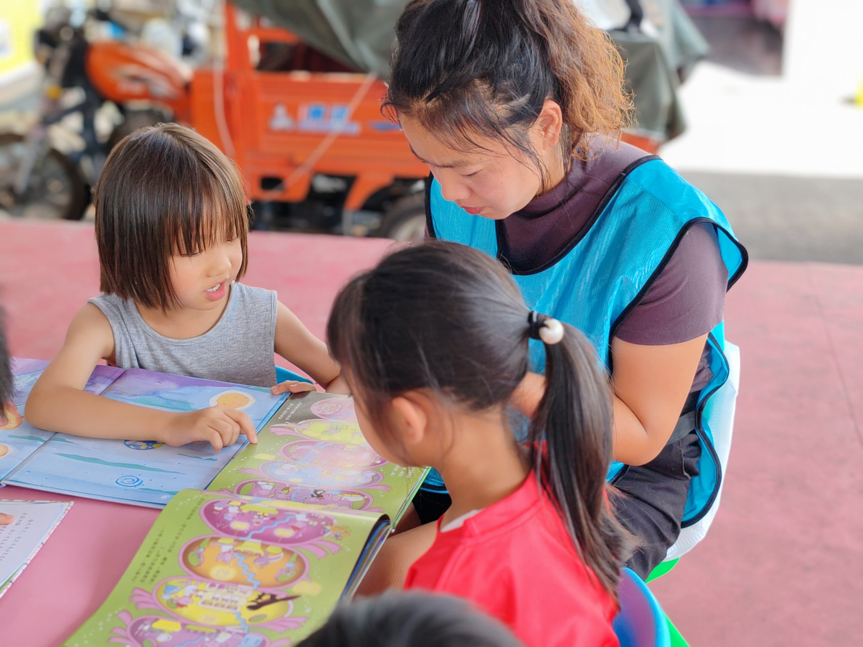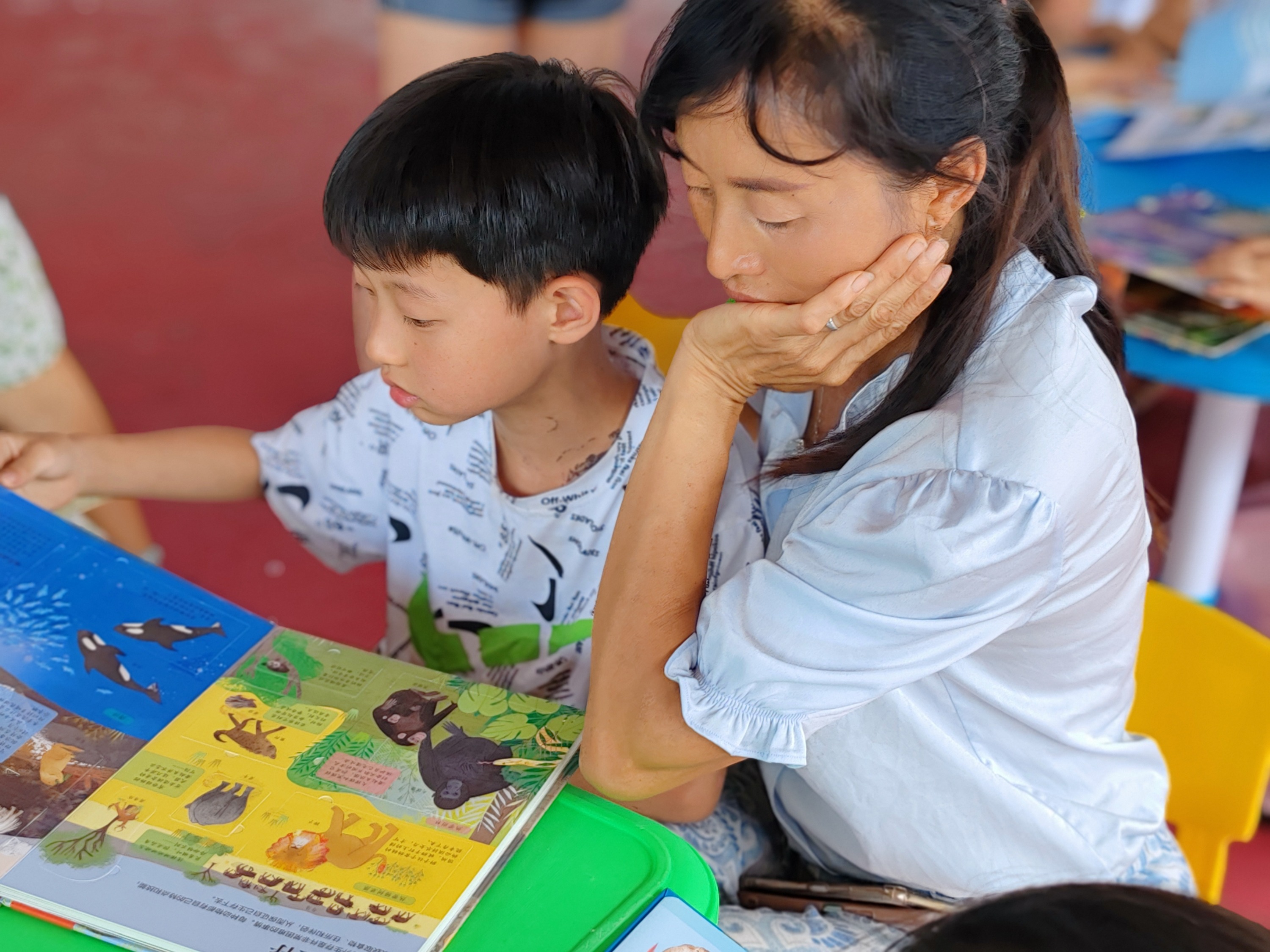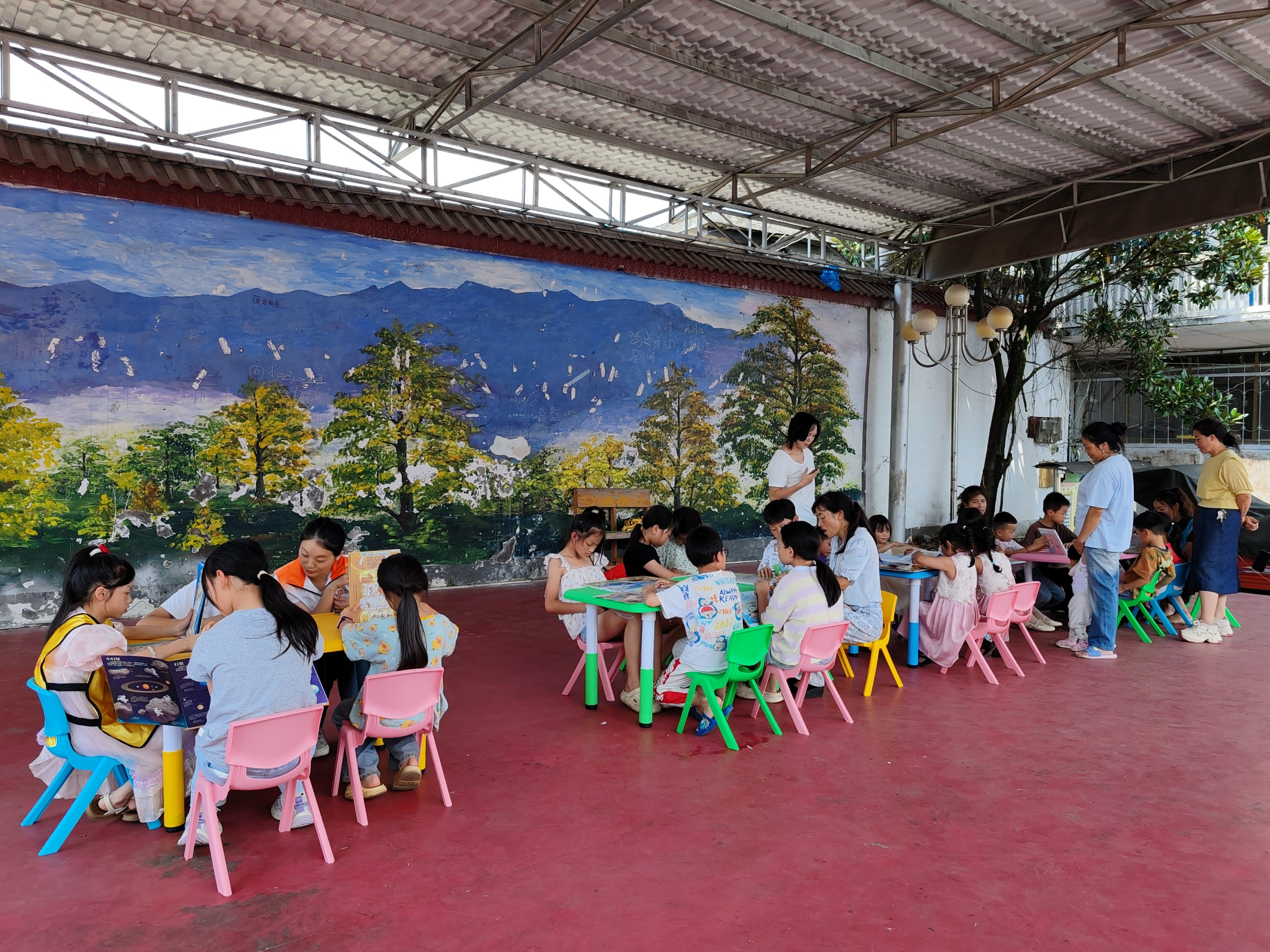 七月流火,禾苗葱郁。7月28日下午,贵州省妇联“家有书香·小桔灯”亲子阅读暨暑期儿童关爱活动走进了六盘水市盘州市石桥镇普彝村“阳光驿站”。活动特邀云岩区第十四幼儿园封鸿云老师开展主题为《亲子共读 爱上阅读》的主题活动,站内书香氤氲,一场别开生面的亲子阅读活动正在彩色桌椅间展开。