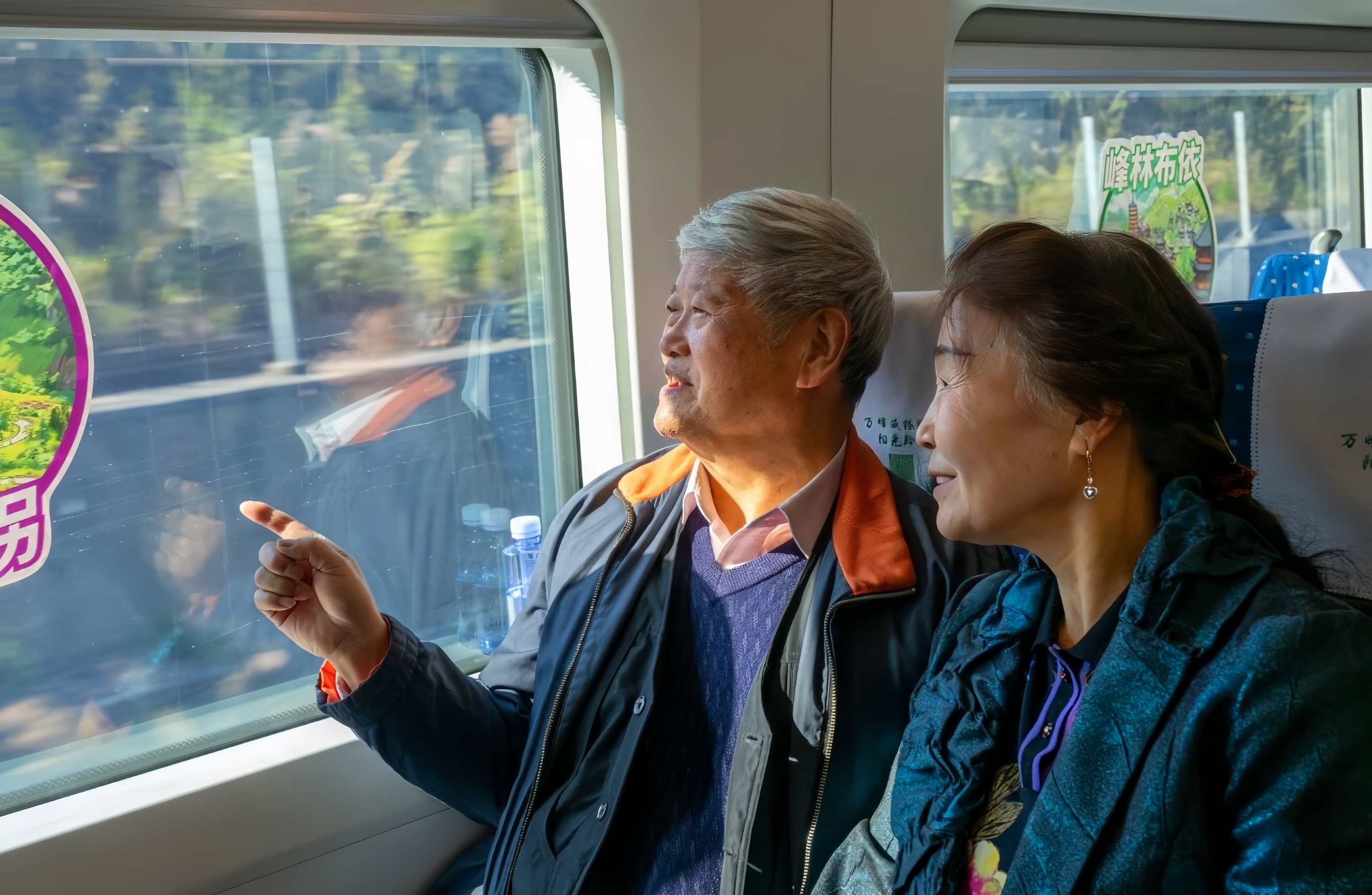 As they sat aboard the inaugural Panzhou–Xingyi high-speed train, watching mountains and clouds glide swiftly past the window, what rose in their hearts was a quiet sense of fulfillment — the feeling that decades of perseverance had finally been answered by the times. The journey that once took more than half a day now takes just about two hours. For a couple who spent their whole lives working on the railway, such a change is not a "novelty," but a long-awaited "realization." It reflects the hopes generations of railway workers held for Guizhou's transportation, and the future they always believed the province would one day embrace. In the past, a trip to Xingyi meant rushing and exhaustion, now, they can finally sit back, take in the scenery, and simply enjoy the train as it weaves through the mountains.