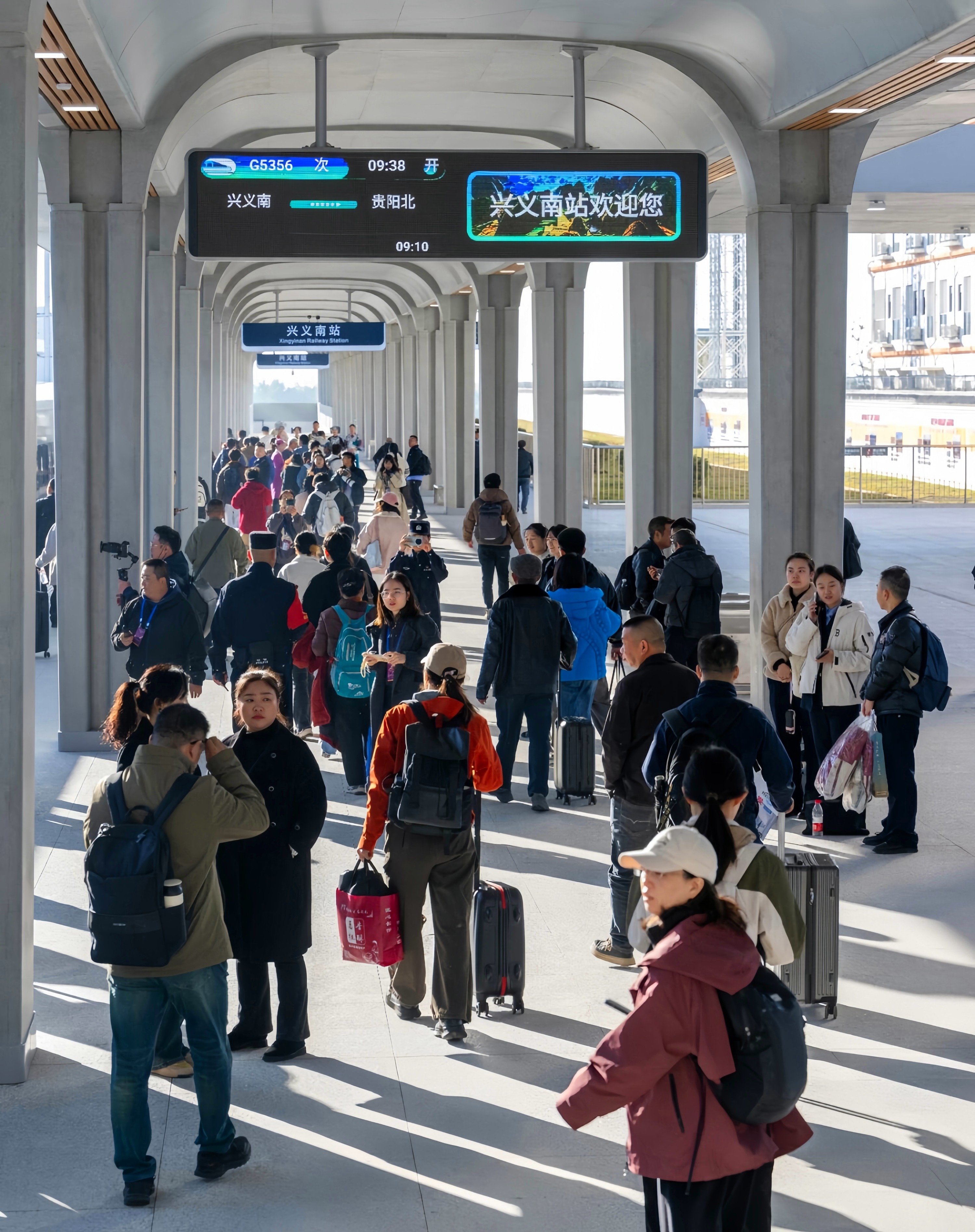 如今,当他们坐上盘兴高铁首发列车,看着窗外的山和云层在眼前快速推移,心里涌出的,是几十年的坚持被时代兑现的踏实感。盘兴高铁让曾经需要大半天的路程缩短到约两个小时,而这样的改变对于一辈子在铁路上工作的他们而言,并不是“新鲜”,而是一种“实现”。它实现了铁路人对贵州交通的期盼,也实现了他们对这座省份未来的想象。过去想去兴义,只能匆匆赶路,现在,他们终于能从容地坐下来看看沿途山水,安静地感受列车穿山越岭的速度。