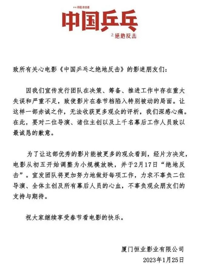 也许是自知没什么竞争力吧,仅仅上映两天后《中国乒乓》就悄然撤档延期至本周五2月17日上映,还把名字改成了《中国乒乓之绝地反击》。