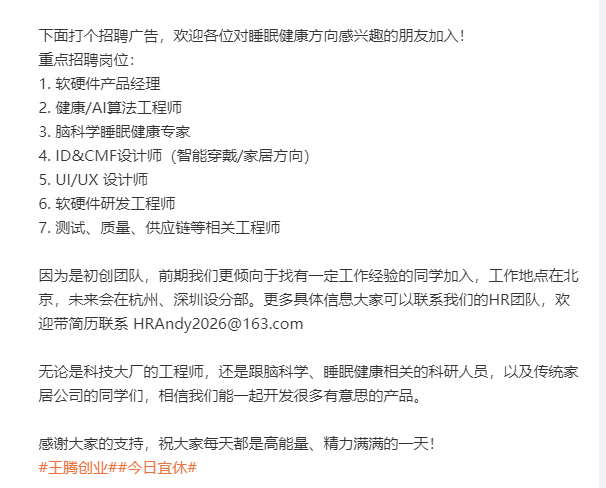下面打个招聘广告,欢迎各位对睡眠健康方向感兴趣的朋友加入!