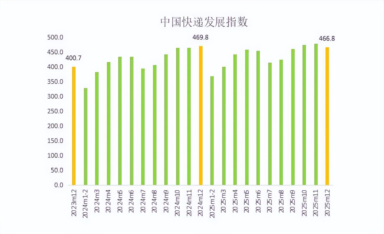 2025年12月中国快递发展指数为466.8 行业运行平稳安全