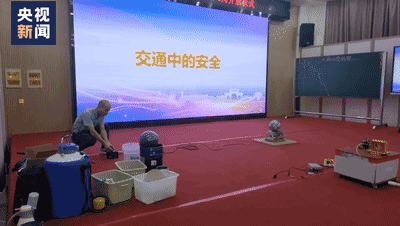 科普交通安全课堂上,用实验演示安全气囊爆炸的效果,提醒大家在车上一定系好安全带↓