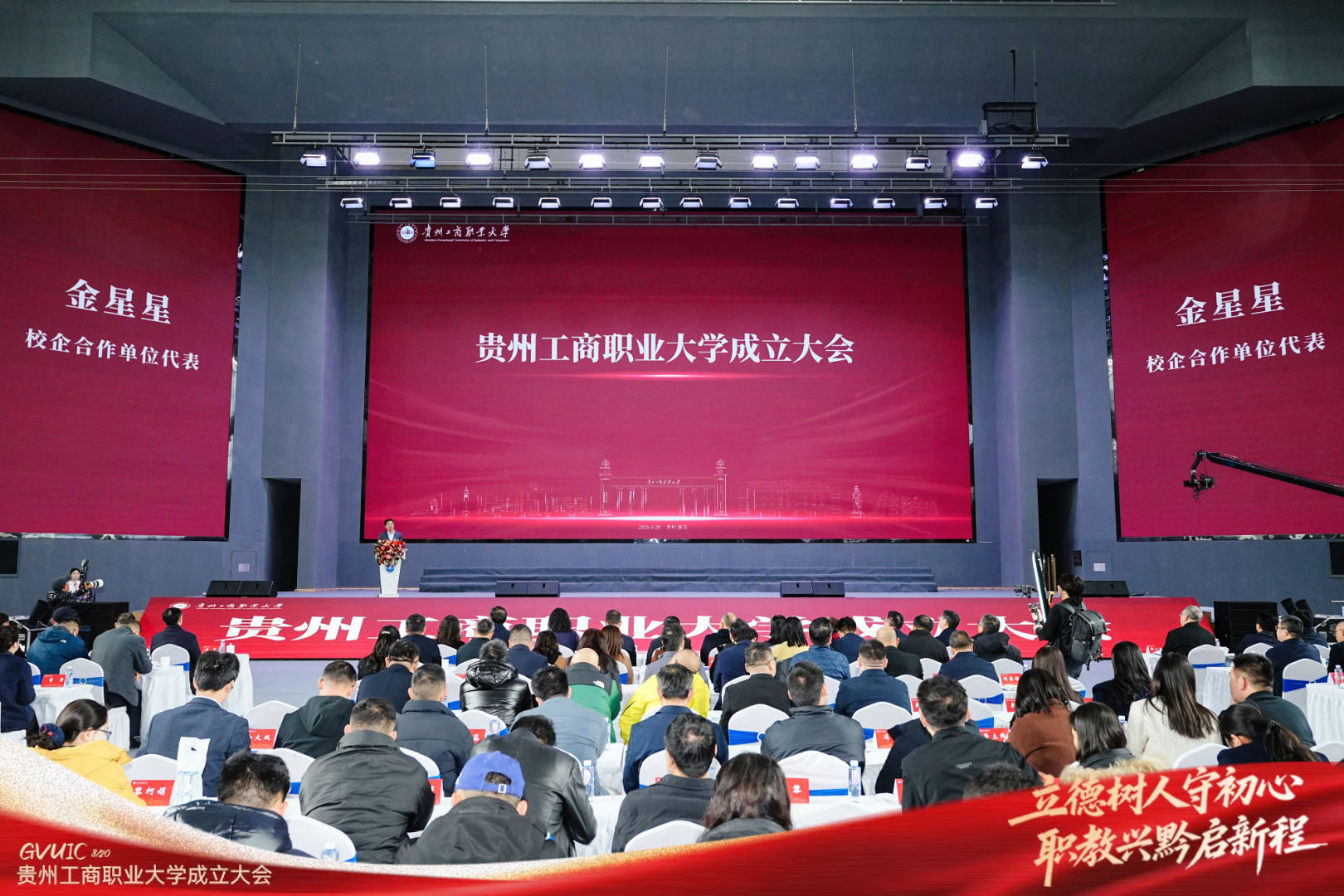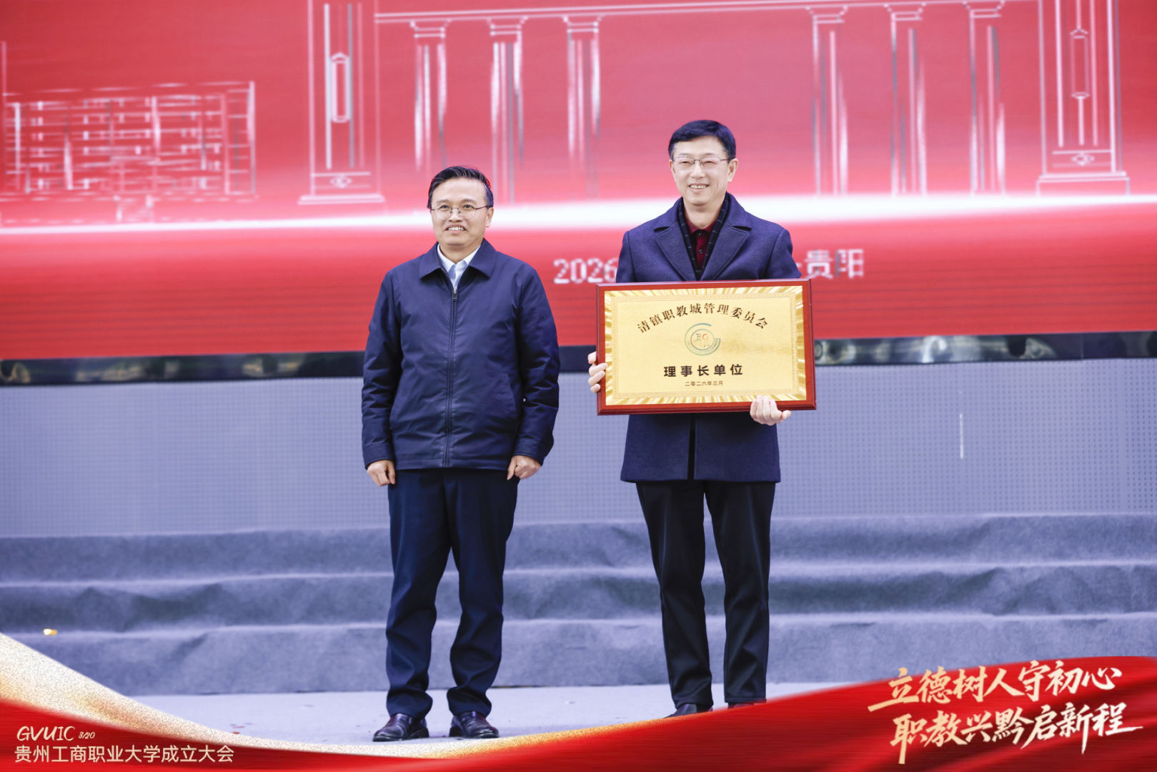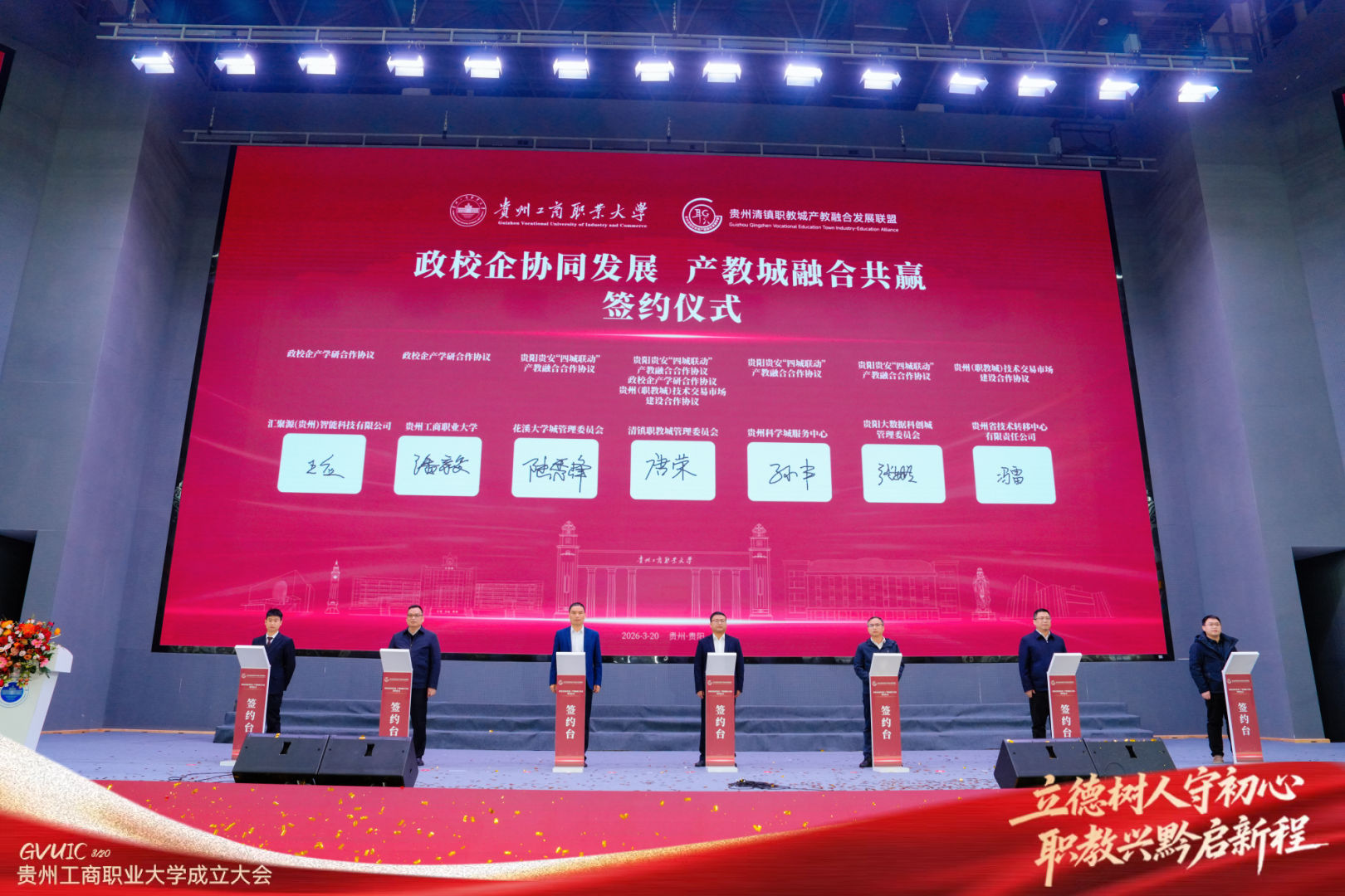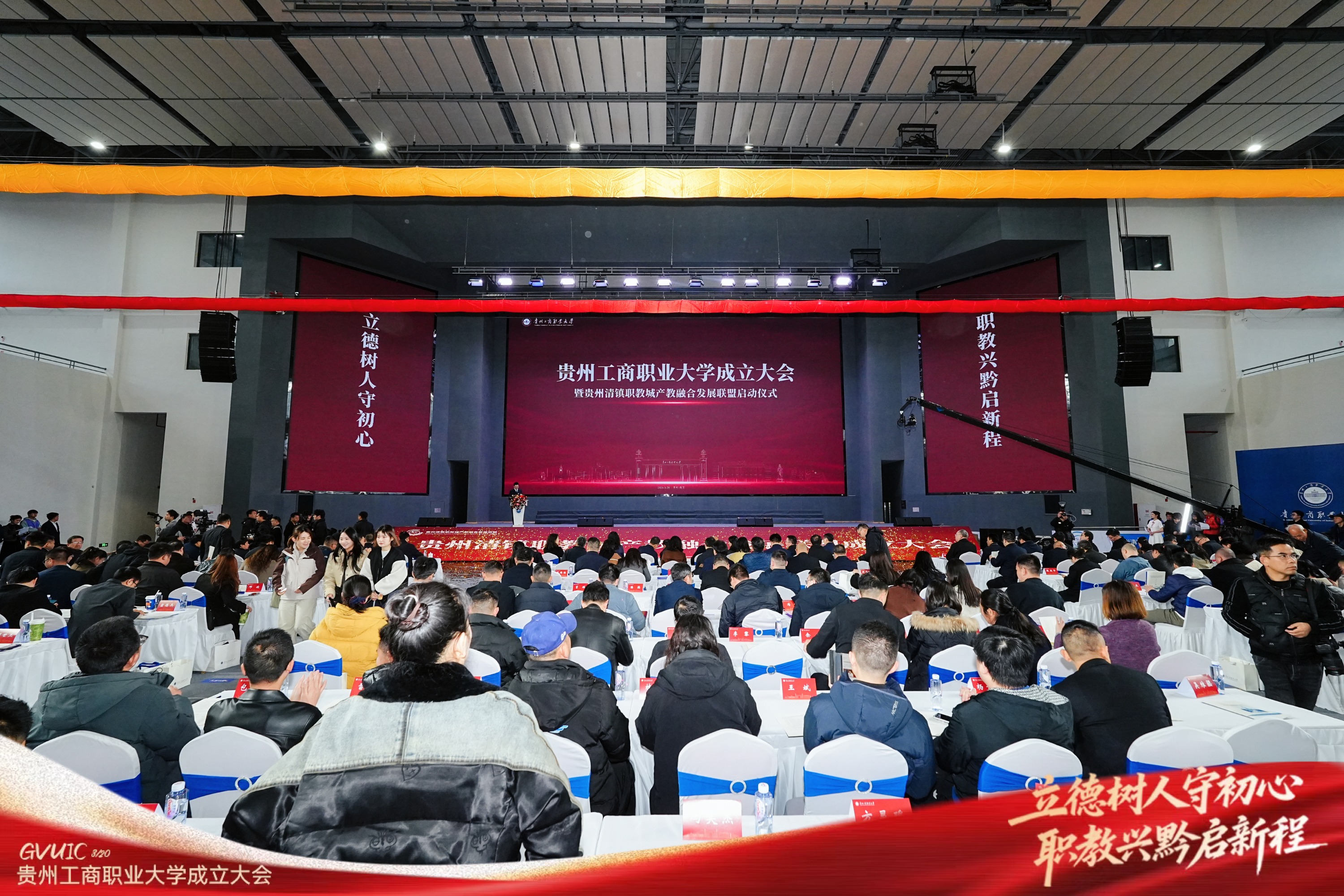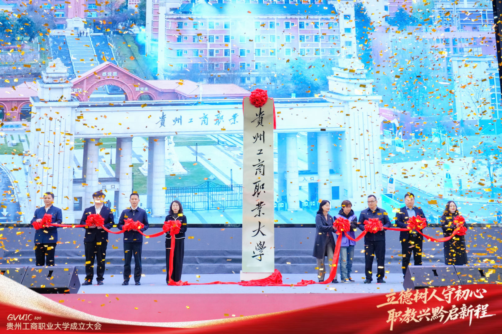 3月20日,贵州工商职业大学成立大会暨贵州清镇职教城产教融合发展联盟启动仪式顺利举行。贵州省、市、属地各级领导、院校代表、企业代表、科研院所专家、全校师生齐聚一堂,共同见证贵州职业教育发展史上这一具有里程碑意义的时刻。
