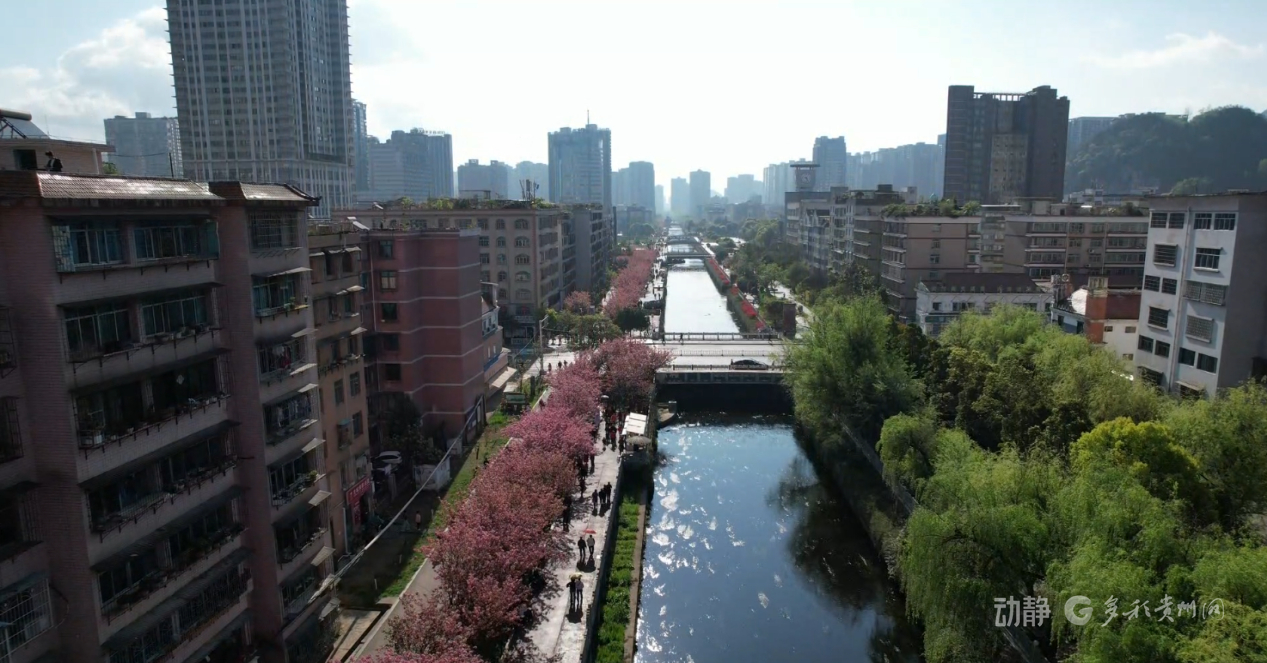 另一边,六盘水市钟山区水城河畔的樱花也进入最佳观赏期,不少市民游客专程前来拍照留影。