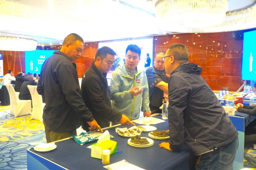 企业推介环节中,烟台东宇海珍品、山东黄渤源生物科技、烟台华康生物医药科技、烟台龙源水产4家企业围绕产业实力、产品特色、合作模式作专题分享。烟台华康生物医药科技公司销售经理李慧介绍,海参全身都是宝,该公司可将海参深加工成50余种产品。品鉴过程中,企业代表同步开展产品讲解与工艺介绍,让采购商在品尝的同时了解产品特色与品质优势。