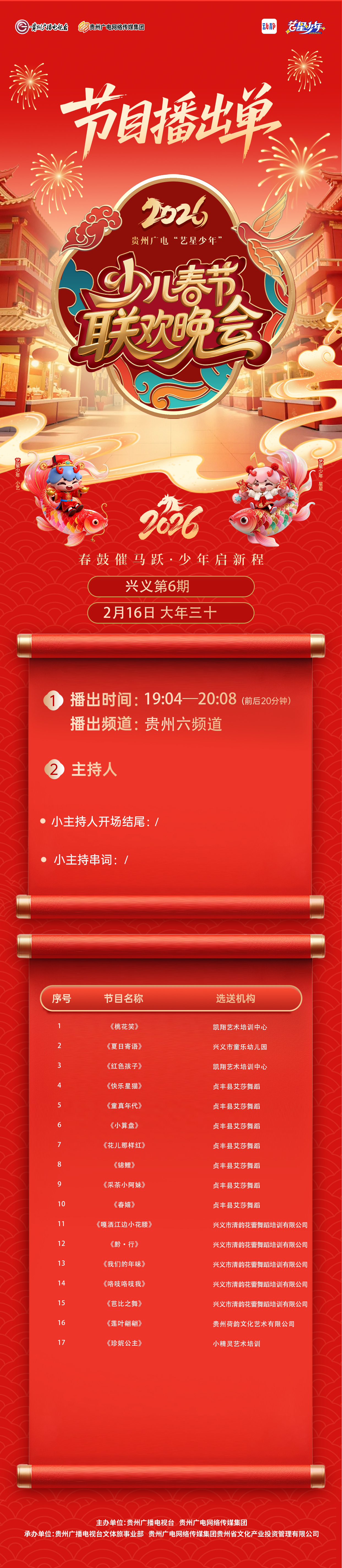 【兴义播出通知】贵州广电2026“艺星少年”少儿春节大联欢活动——节目播出通知!!!