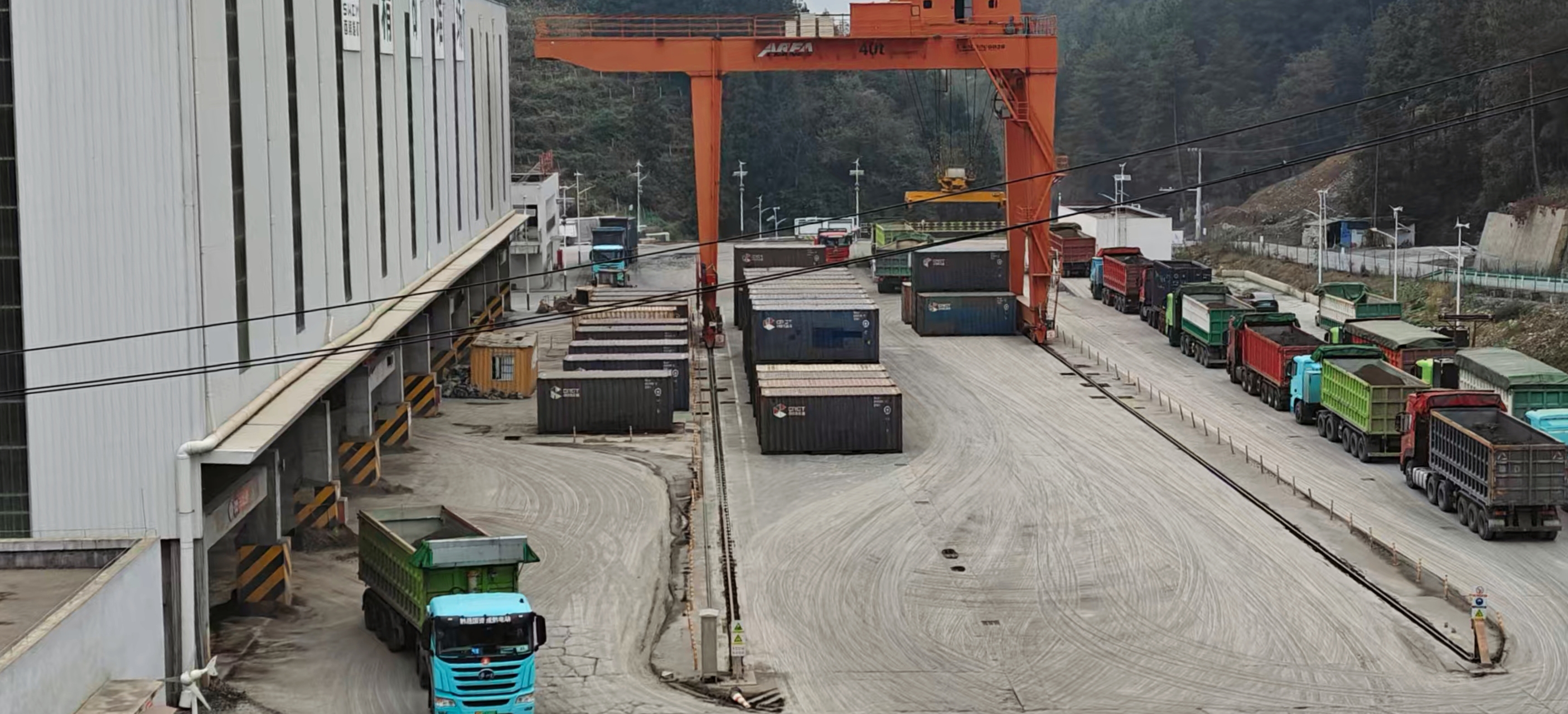 在福泉,车辆穿梭于火车站与产业基地之间,形成磷石膏与磷精矿的绿色循环运输。