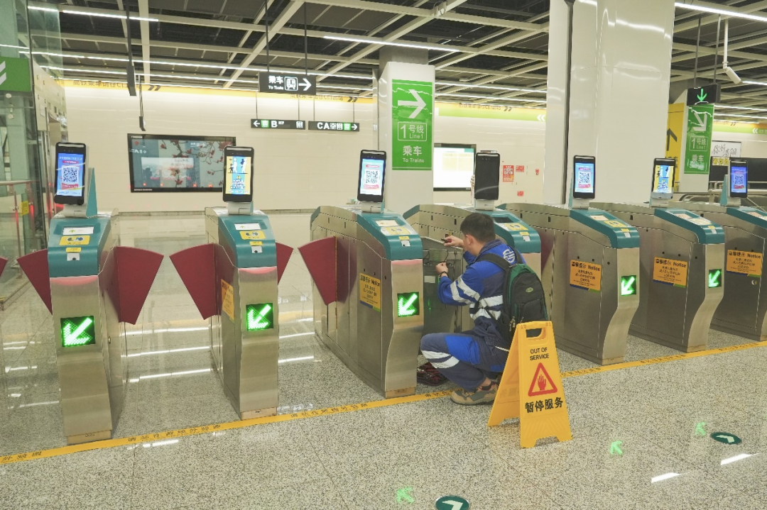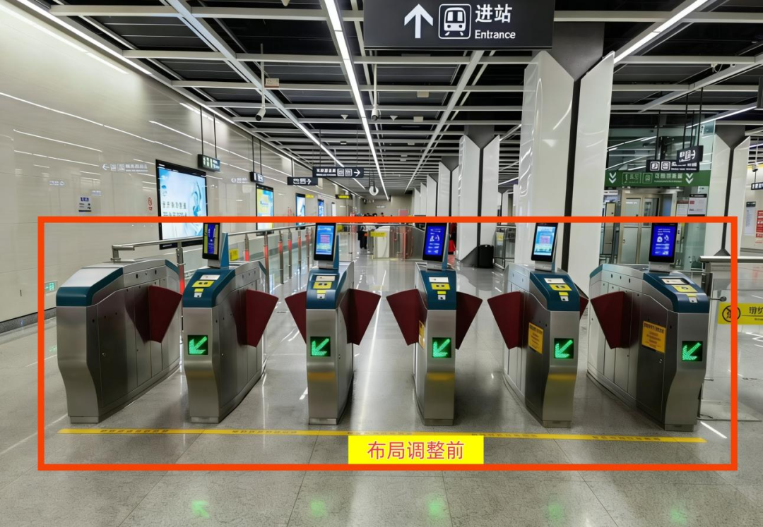 技术团队打破原有布局局限,结合客流流向科学规划空间,扩容C口出站闸机规模,将原有9组出站闸机增至15组,大幅提升出站通行效率;针对A口进站客流滞留问题,通过闸机迁移、补充,使A口进站闸机从5组增至7组,彻底缓解站厅客流拥挤现状,让乘客“快进快出”不再等待。同时,结合闸机布局的更新,对导向标识进行优化,在关键点位实现了“全程无断点”的连续指引,满足不同乘客的出行需求。