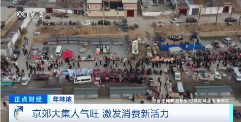 位于北京市房山区的张坊大集也是热闹非凡,年味十足。有超过400家商户自发来到市集,春联、年宵花、食品、鞋帽、杂货等一应俱全,不少年轻人也赶到这里购买年货。