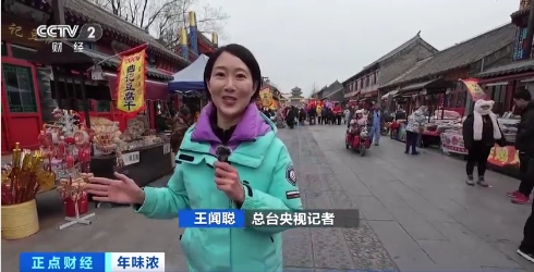 总台央视记者 王闻聪:北京市延庆区永宁大集很特别,周围都是仿古建筑,有600多年的历史。位置在永宁古城最热闹的步行街上,来到这会被这热闹的吆喝声和现场表演所感染。