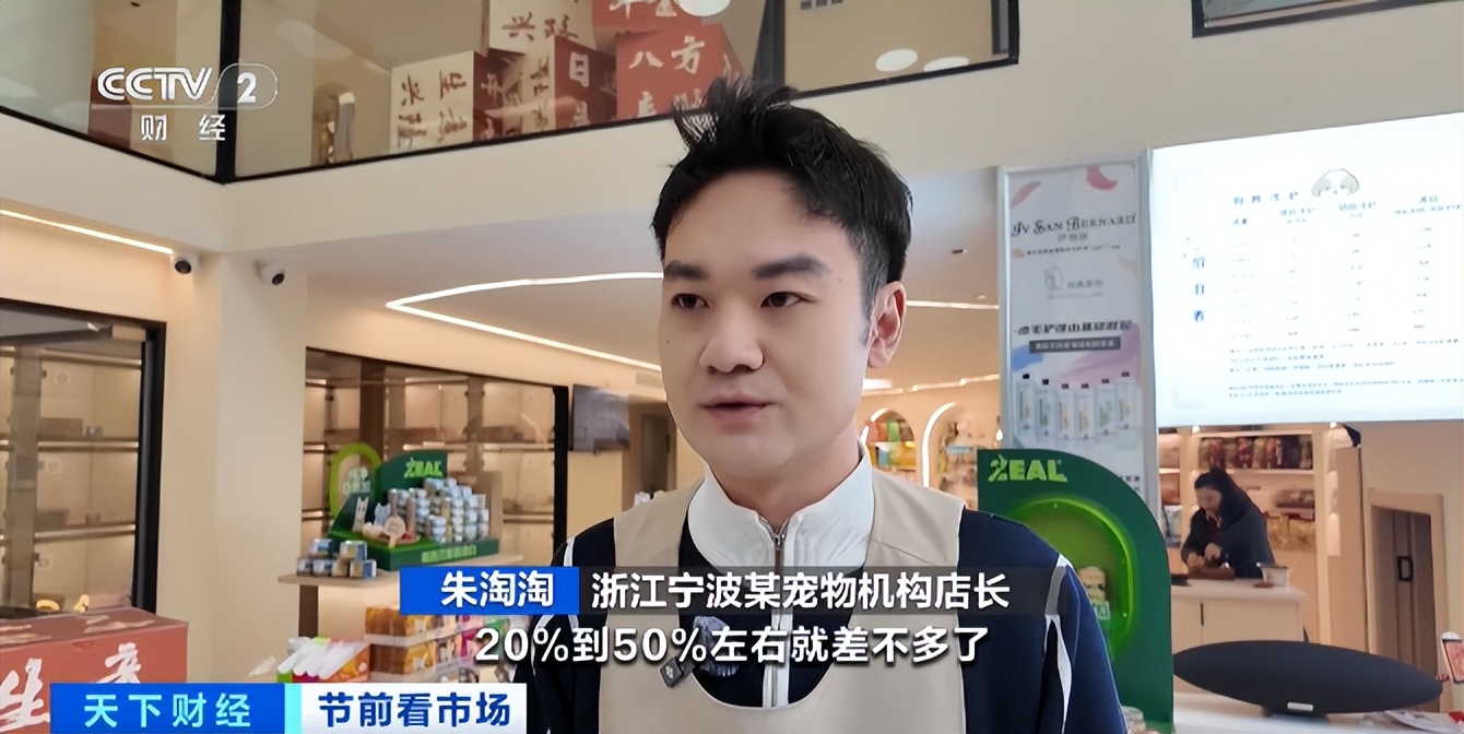 浙江宁波某宠物机构店长 朱淘淘:日常我们宠物寄养入住率20%-50%左右,但是春节期间,寄养服务提前预订的订单可能会爆满。