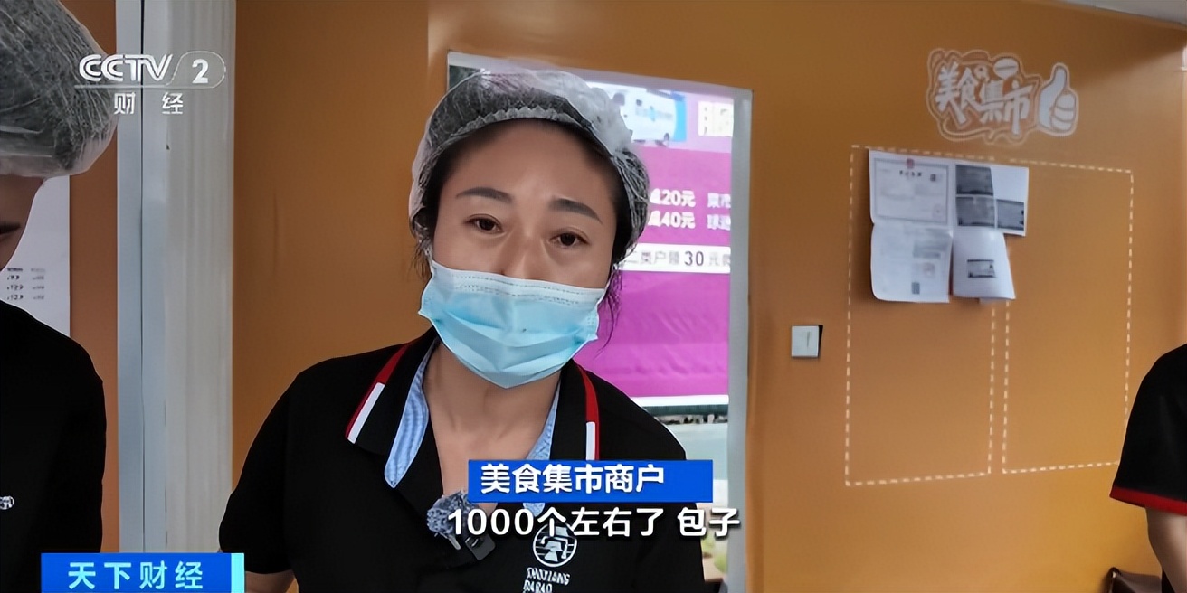 美食集市商户:今天业绩相当不错,到目前为止已经有(卖出)1000个左右的包子。