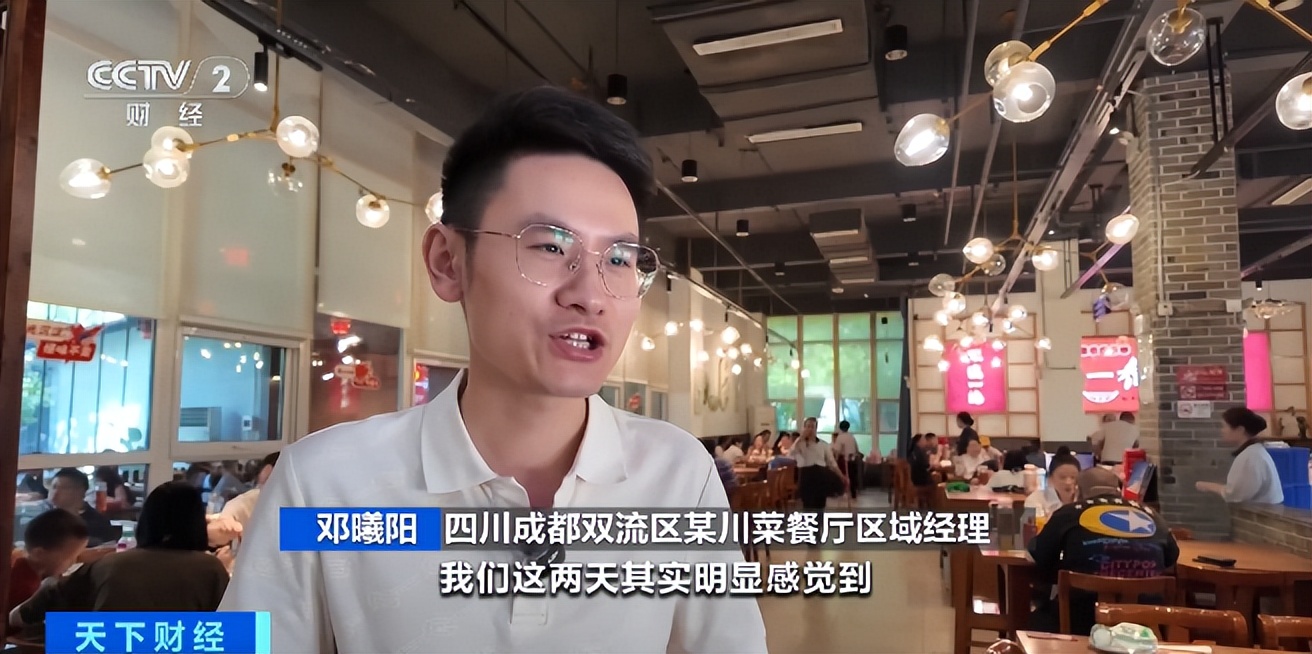 四川成都双流区某川菜餐厅区域经理 邓曦阳:我们这两天其实明显感觉到有客流在增加,(比往常)增加了20%到30%。