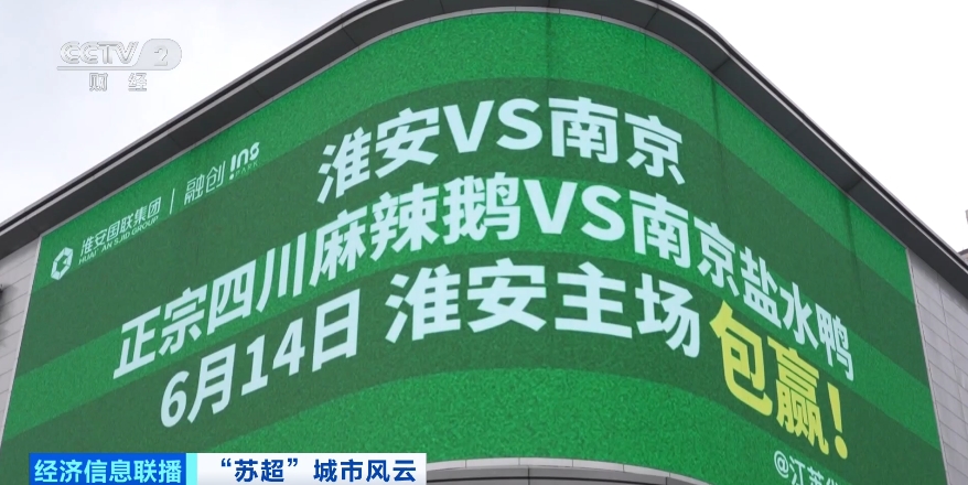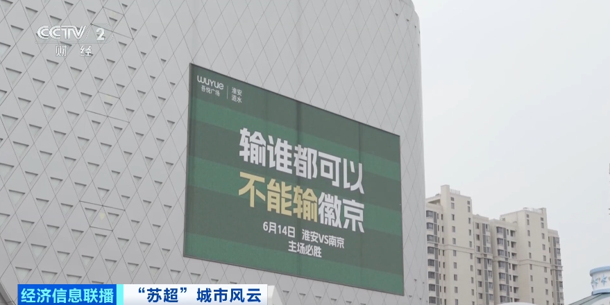 拉歌之外,从“苏超”第一轮开始的网上各类“散装江苏”热梗,如今在城市中已经是随处可见,记者发现,很多商家都自发在商场大屏外刊登热梗标语。