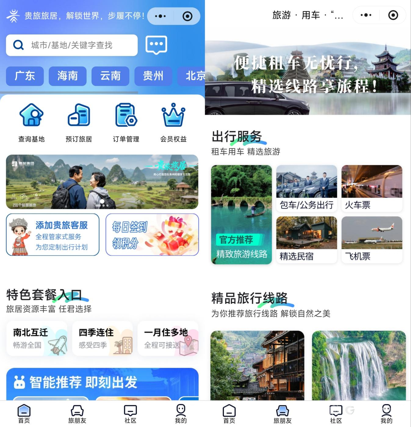 有智慧的平台让旅居生活更有趣。“贵旅旅居”线上全场景数字化平台,打造了集资源聚合、智能匹配、服务调度、信任保障于一体的旅居生活智慧服务入口。不仅支持在线一站式预订、支付及售后管理,也可以通过AI算法,根据用户年龄、兴趣、季节偏好等,推荐最适合的房源与行程。平台培育了多个线上社群,用户可以通过经验分享与贴心攻略,找到当地旅居同好,让旅居生活不再孤单,真正实现“线上有圈,线下有伴”的旅居社交生态。