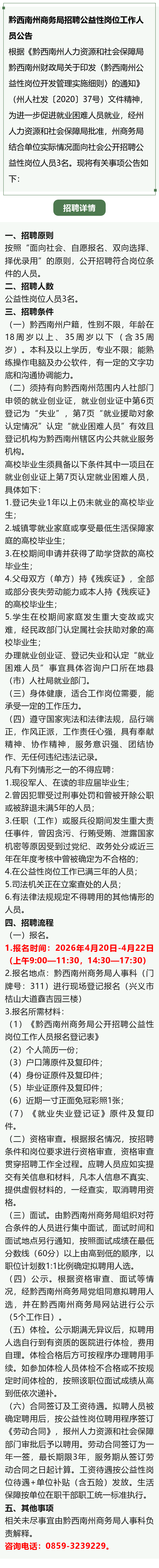 【行政单位】商务局招聘!报名时间:2026年4月20日-4月22日!