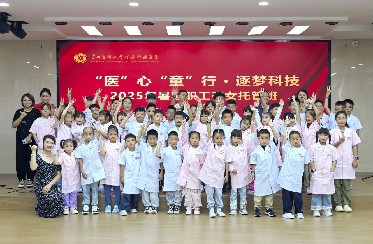 这个夏天,贵州医科大学附属肿瘤医院第四届暑期职工子女托管班“医”心“童”行·逐梦科技在欢声笑语与智慧探索中圆满落幕!此次托管班主题聚焦医疗特色融入科技元素,为6-15周岁的职工子女们打造了一个充满惊喜与成长的奇妙乐园。孩子们身着专属“医师服”,在专业师资和志愿者的陪伴下,开启了一场别开生面的科技与医学探索之旅。