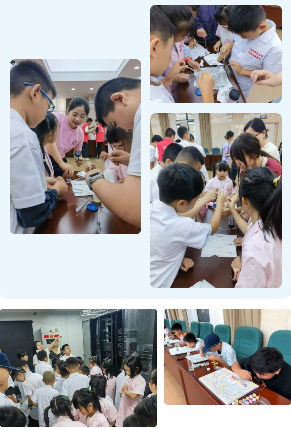 初到的孩子们在温馨破冰活动中迅速熟络,组建团队,设计专属队旗与口号,童真的创造力瞬间点燃现场。随即,在贵州医科大学附属肿瘤医院检验科谢正琼老师的带领下,孩子们化身“小小检验师”,亲自动手使用试纸试剂学习如何进行尿蛋白检测(样本采用水加入鸡蛋清模拟医学检测样本,无任何传染性),亲身感受医学检测的严谨与魅力。接着,孩子们在信息中心专业老师的引领下参观医院的智能化大脑——中心机房,并了解了大型计算机网络在医疗领域的应用。整天的活动穿插在游戏、音乐、智力互动、团队协作之中,让孩子们尽情释放活力。课后用绘画做成每天的《成长日记》,将实验、探秘、体验、游戏、艺术的每一步记录下来,能量满满。