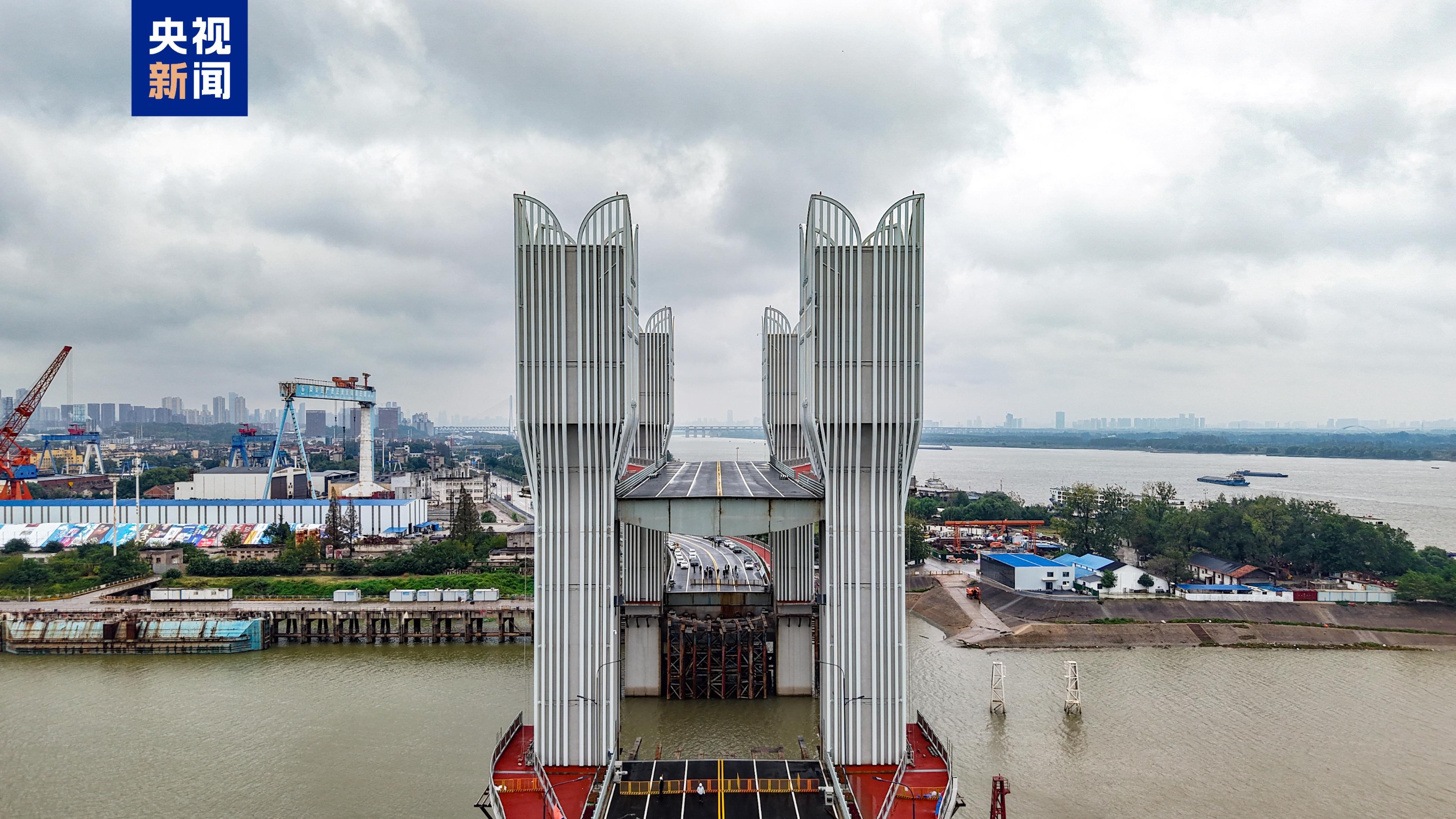 据介绍,右岸大道开启桥桥梁可升降部分全长104米,塔柱断面最宽处46.2米,最大可提升27米,提升重量2650吨,上述四项数据(提升长度、宽度、高度、重量)在同类型开启桥梁中处于领跑地位,居于亚洲第一。
