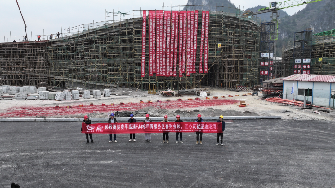 近日,随着最后一方混凝土浇筑完成,贵平高速房建4标甲青服务区主体结构顺利封顶,标志着项目房建工程建设取得了重要的阶段性突破,向服务区全面投用迈出了关键一步。