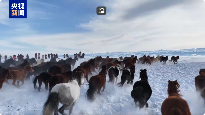 辞旧迎新之际,新疆伊犁昭苏县的牧民赶着上百匹骏马在茫茫雪原上奋蹄奔腾,上演“天马踏雪”的视觉奇观。奔跑中的骏马鬃毛披银挂霜,雪花如浪般溅起,形成一道奔腾的“雪幕”。当地人民用这种方式踏破旧岁,迎接新年。(总台记者 佘浩东 王臻)