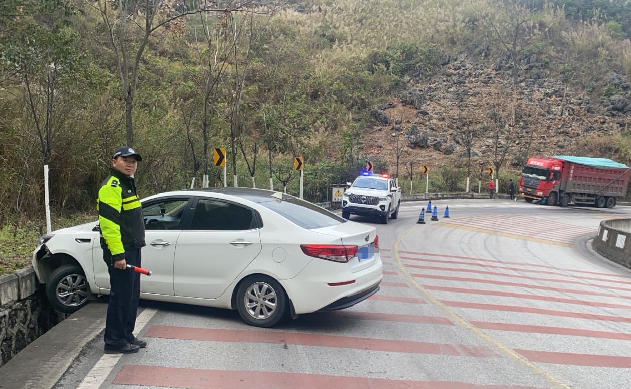 近日,贞丰县公安局交警大队接到群众报警称,在辖区凉水沟路段发生一起交通事故,请求出警。