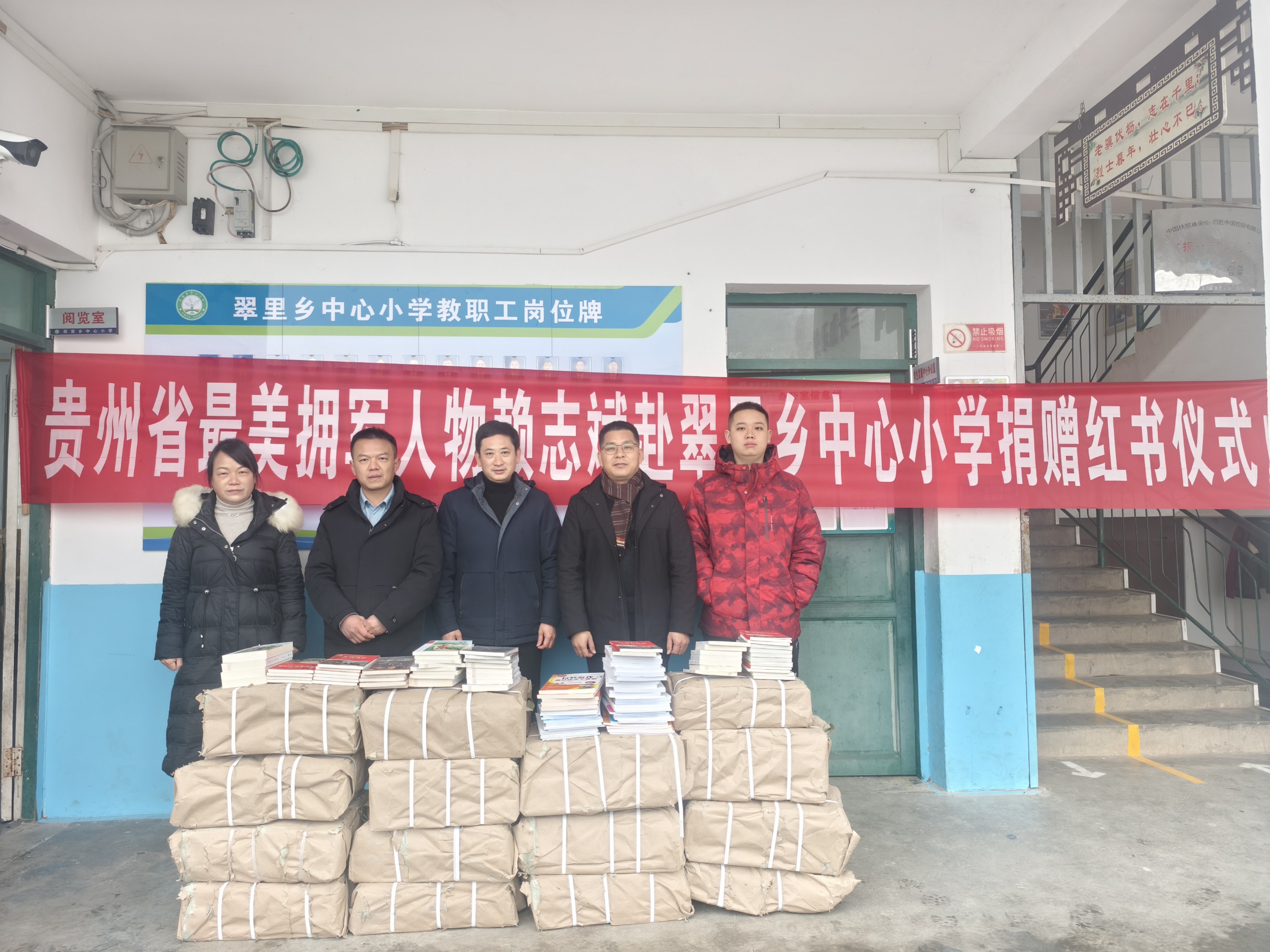 近日,贵州省首届“最美拥军人物”赖志斌,在从江县退役军人事务局的陪同下,带着精心挑选的红色书籍走进从江县翠里中心小学开展捐赠活动,为乡村学子送去精神食粮,让红色薪火在校园扎根,让拥军助学的暖流浸润童心。