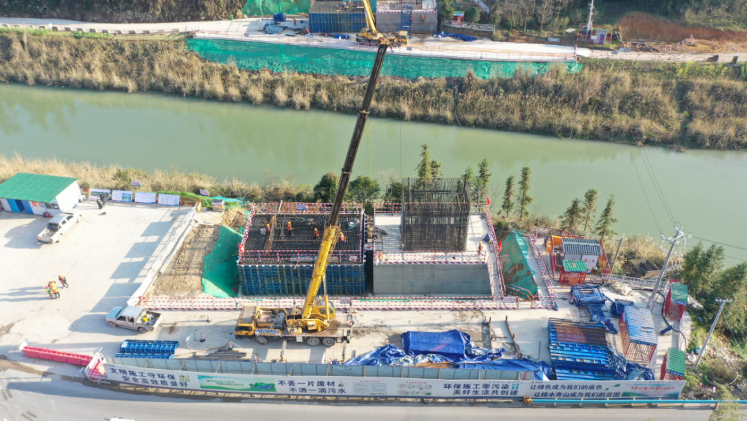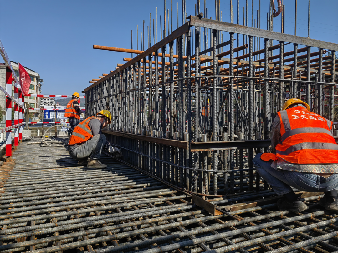 在玉天高速TJ-2合同段共和特大桥施工现场,建设正酣。共和特大桥由左幅1号桥(长702.5米)、左幅2号桥(长318.5米)及右幅桥(长1091.5米)组成。全桥设计桩基184根、承台12个、墩柱132根、盖梁64个、T梁367片。截至目前,已完成桩基混凝土浇筑30根,左幅1号桥10、11、12号墩承台混凝土已全部浇筑完成,桥梁下构整体形象进度达10%。