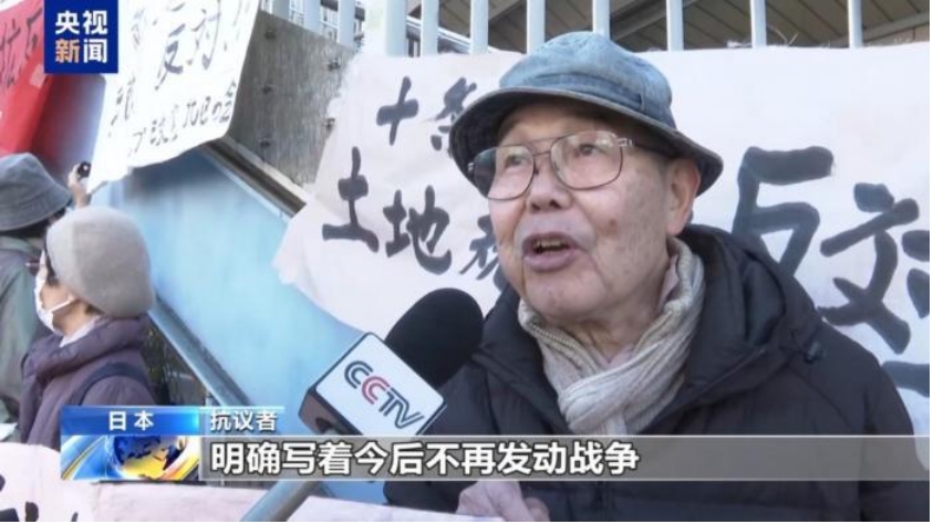 抗议者:我们对于高市政权大幅扩充军备、发表各种强硬好战言论持反对态度。自民党以及现在共同执政的日本维新会,这些人声称扩充军备能实现和平,但实际上他们想的是如果日本和美国的军工产业获利的话,他们自己也能从中得到好处。但这是错误的,他们想尽快废除宪法第九条,而我们要为守护宪法第九条采取行动 。
