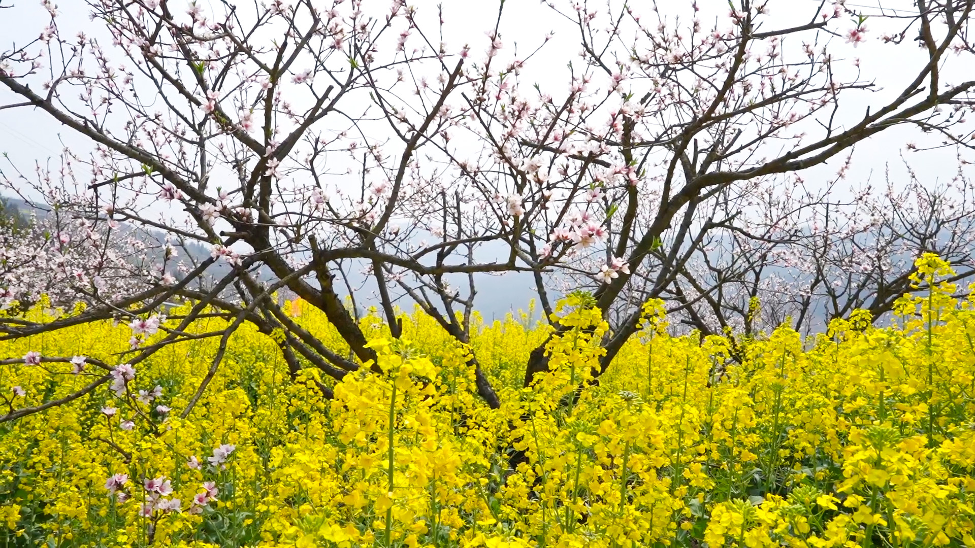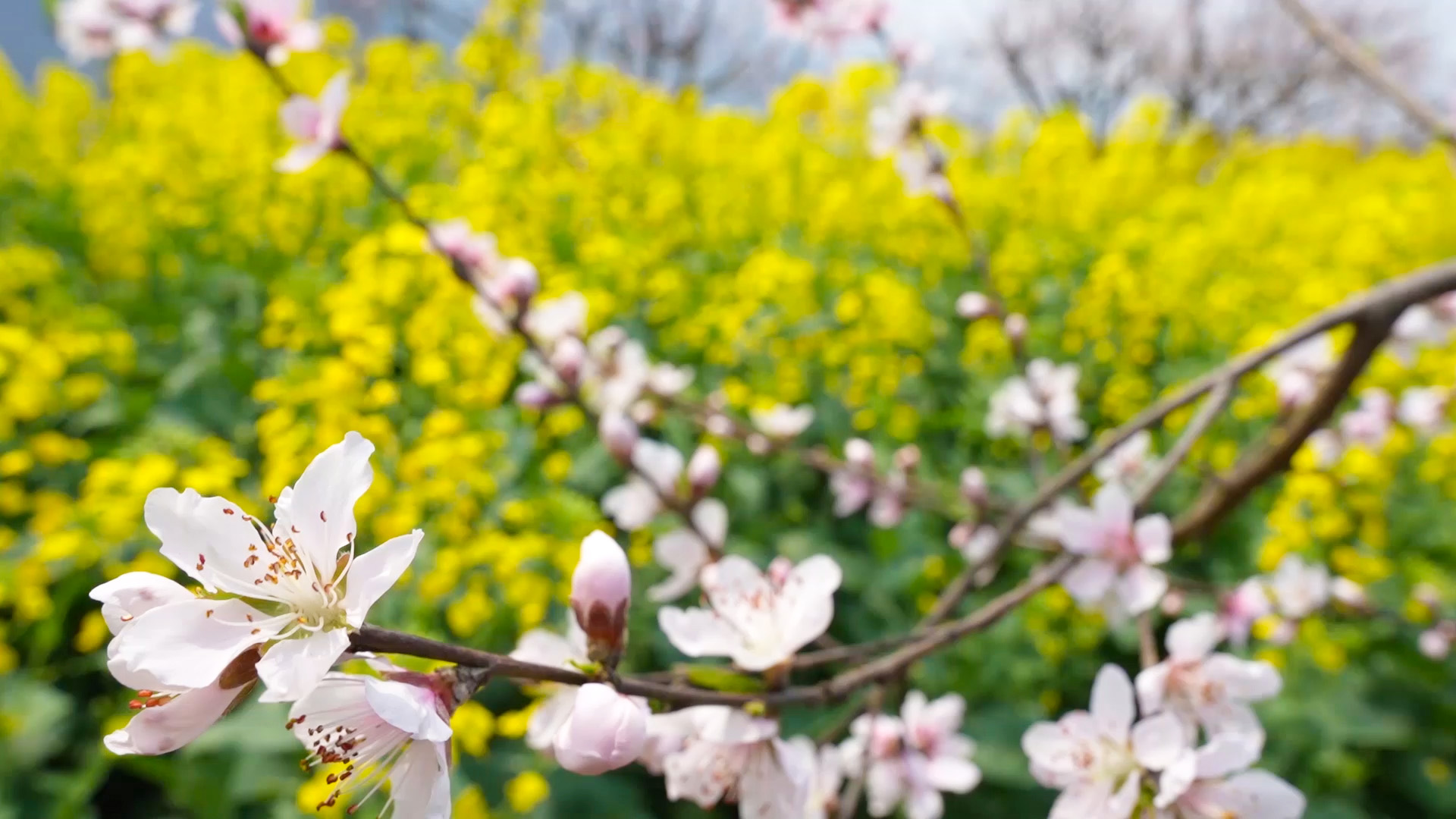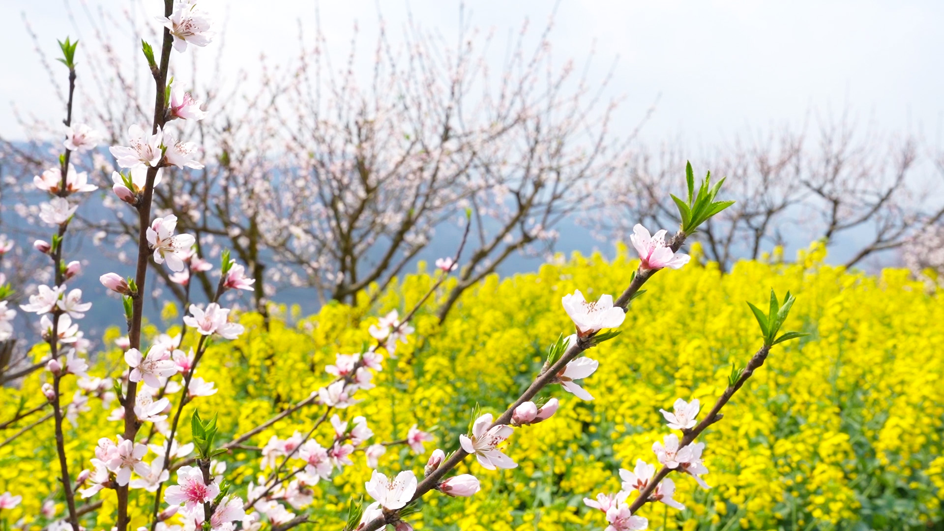 当地村民介绍,近一个星期以来,气温变暖,天气晴好,桃花、李花、油菜花等开得更多更好了。