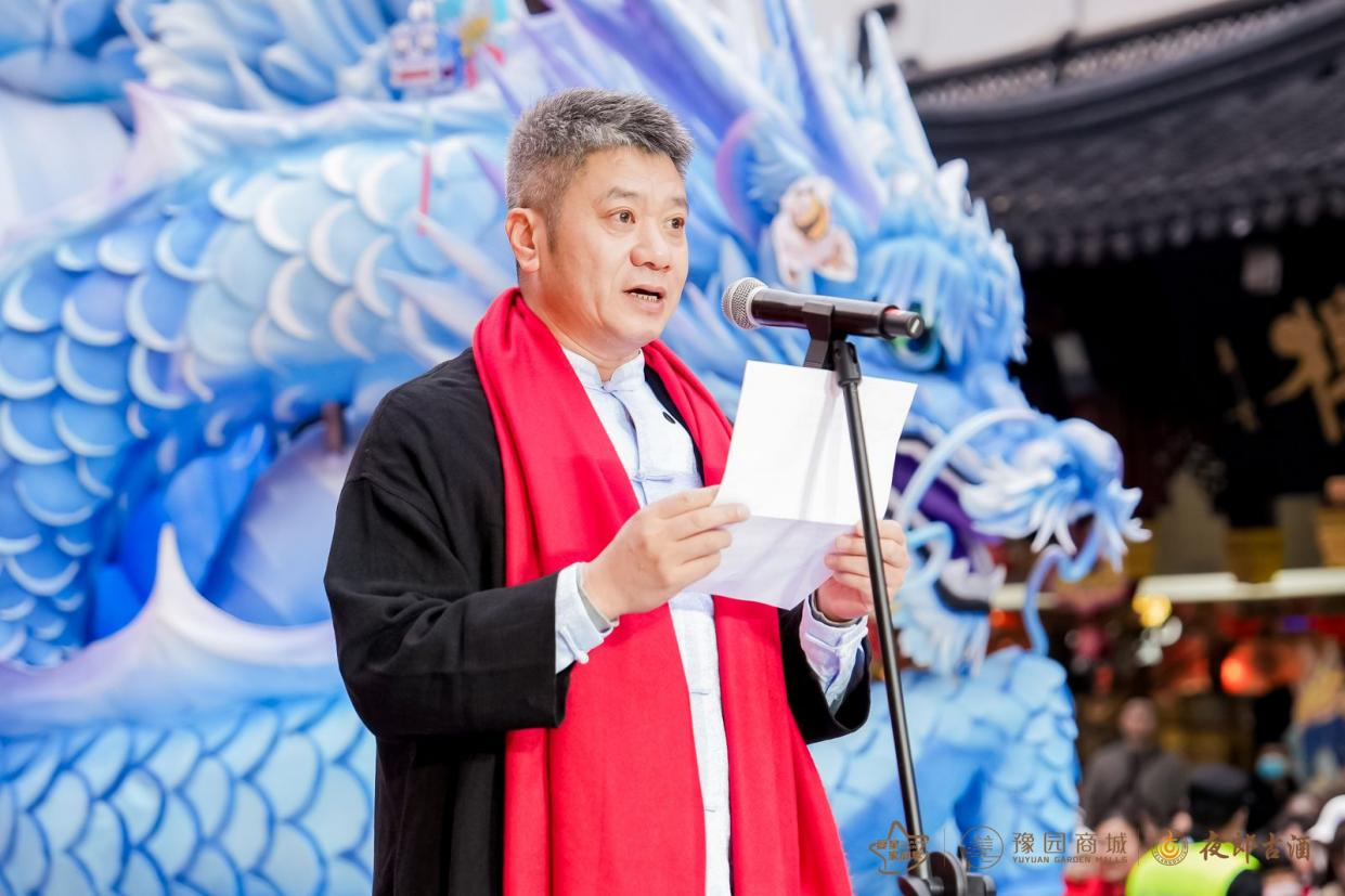 1月29日晚,复星酒业合伙人、复星科创合伙人、夜郎古酒业董事长余方强现场宣布2024豫园民俗艺术灯会品牌日正式亮灯,并送出殷切期望:“愿中国白酒随着豫园灯会的第29次绽放,走出国门、飘香海外,让世界爱上中国酱香!”