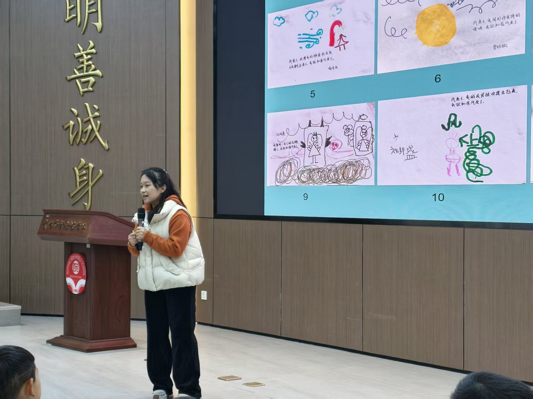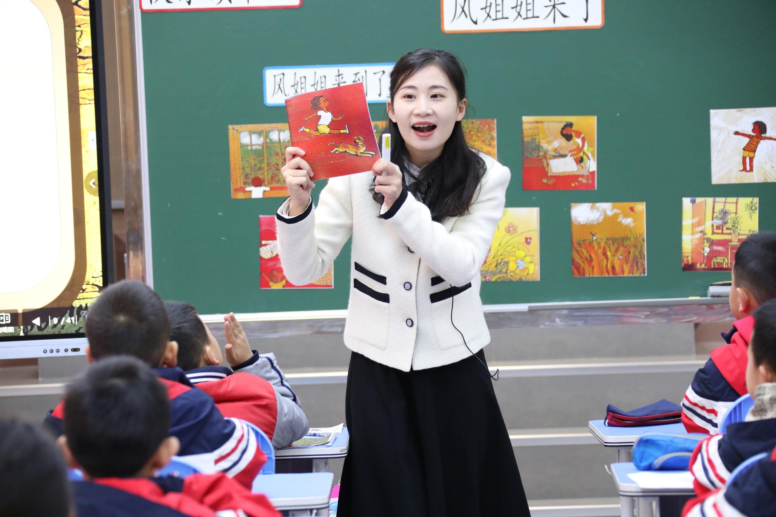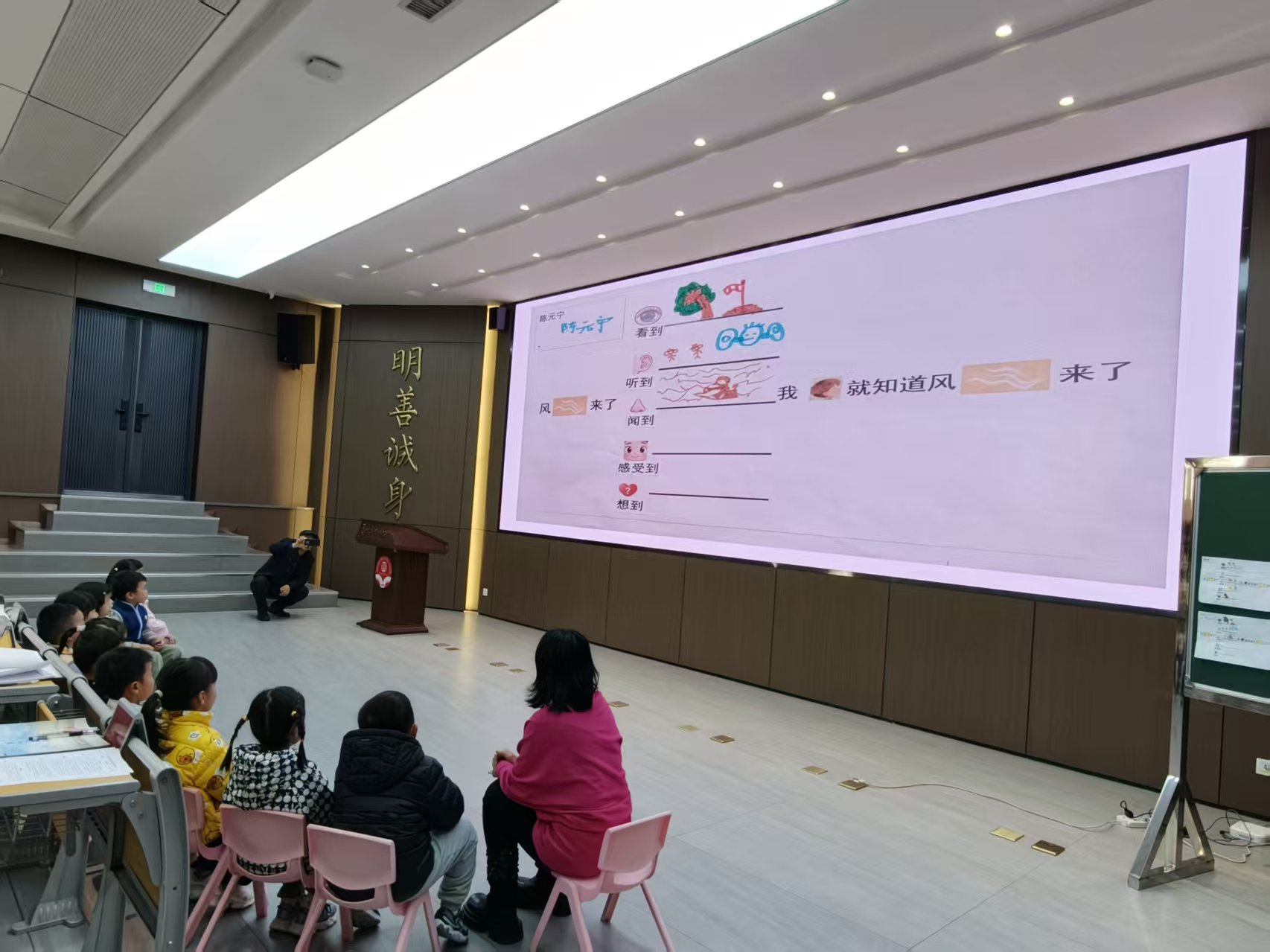 在全场教师朗朗的散文朗读声中,上午的跨学段教学交流正式开启。南明小学吴少君老师执教一年级绘本阅读课,以风姐姐的足迹为线索,将字词句学习自然融入绘本赏析,通过课堂积星卡激励机制强化学习任务,引导学生开展自我评价,凸显小学语文教学的结构化与能力导向。