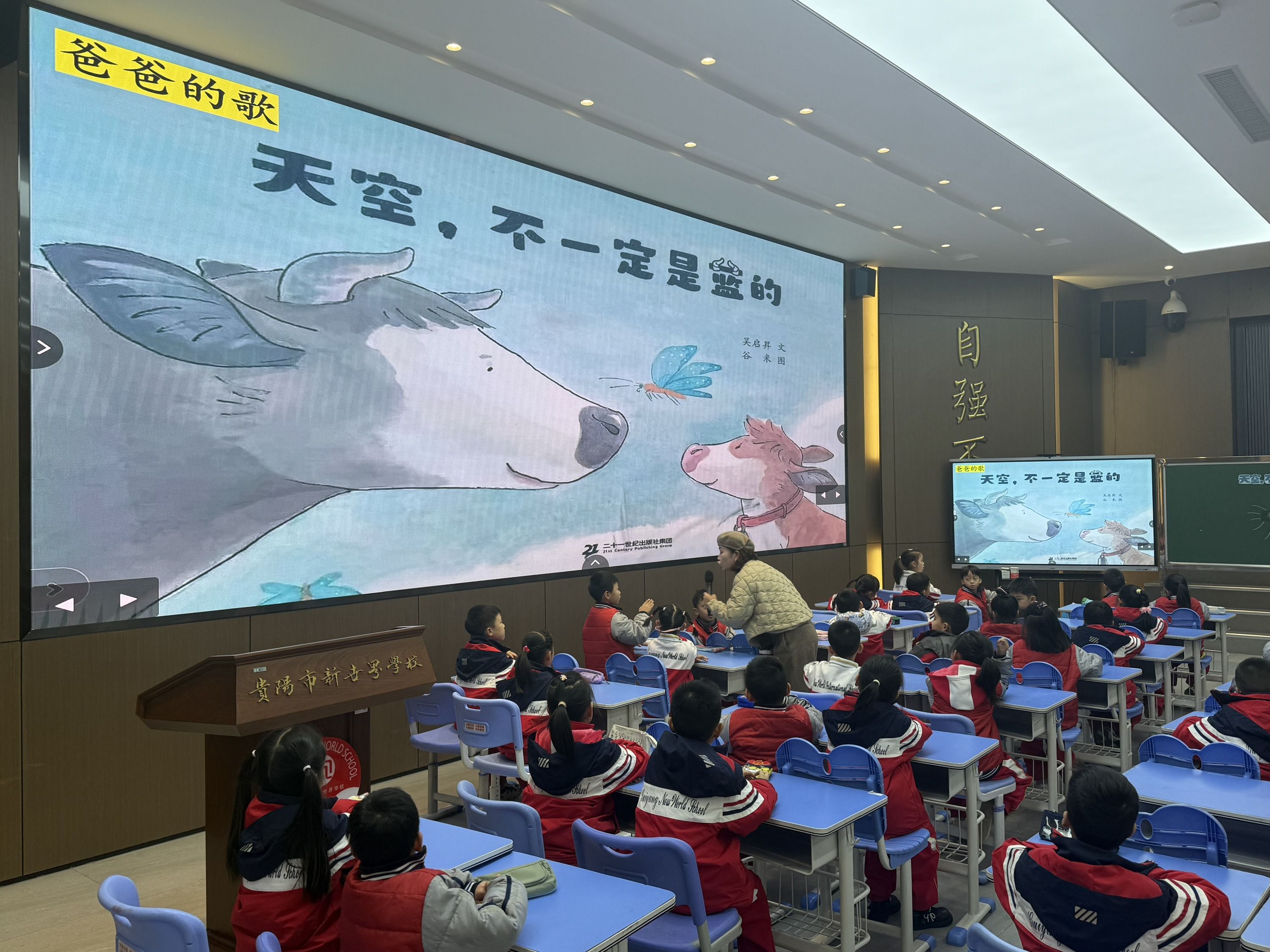 下午的教学交流在王艳主任发起的绘本语言建构游戏中拉开序幕。观山湖区世纪城小学吴钊老师执教一年级绘本阅读课,从封面细致观察切入,引导学生猜测人物关系与故事内容,介绍图文作者背景;基于学情分析与难点预判,选取核心页面组织集体讨论,通过精准提问与追问,激发学生观察、比较与思辨能力,体现小学语文教学对文本解读与思维训练的重视。