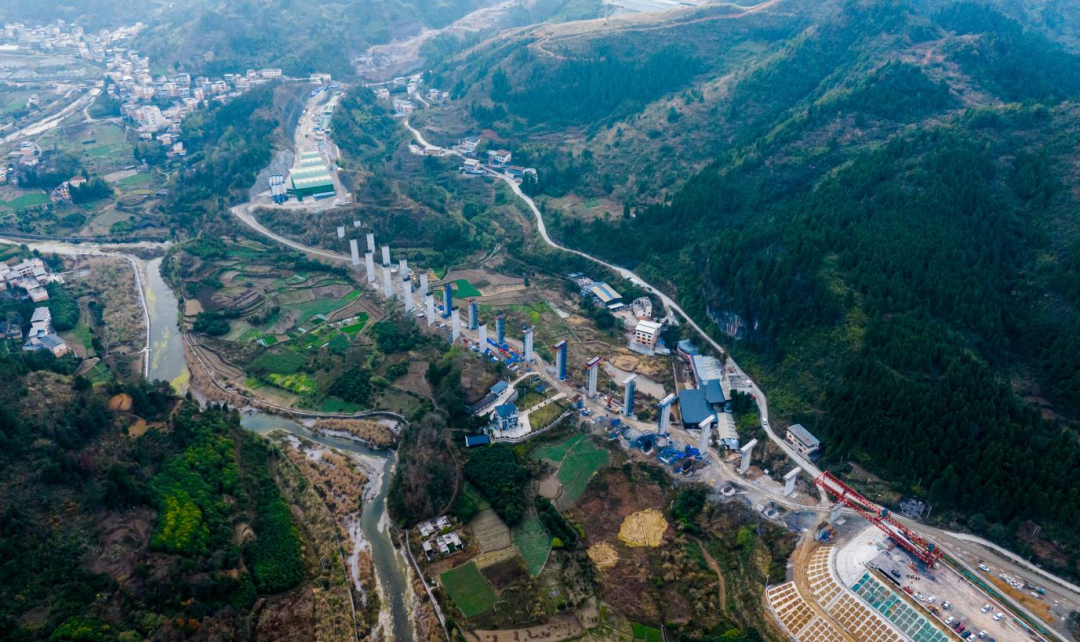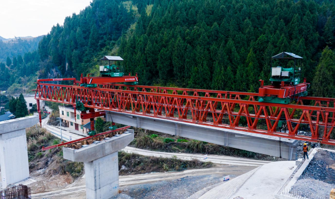 针对瞬时大风、地形复杂等挑战,项目建设团队提前开展10余次现场勘查,不断优化T梁架设方案,引进高效能架桥机,配合智能监测设备,确保T梁精准落位。据悉,松万3标主线全长10.47公里,T梁共计2101片,为全线控制性工程,其中石竹1号桥共18跨,需架设T梁195片。