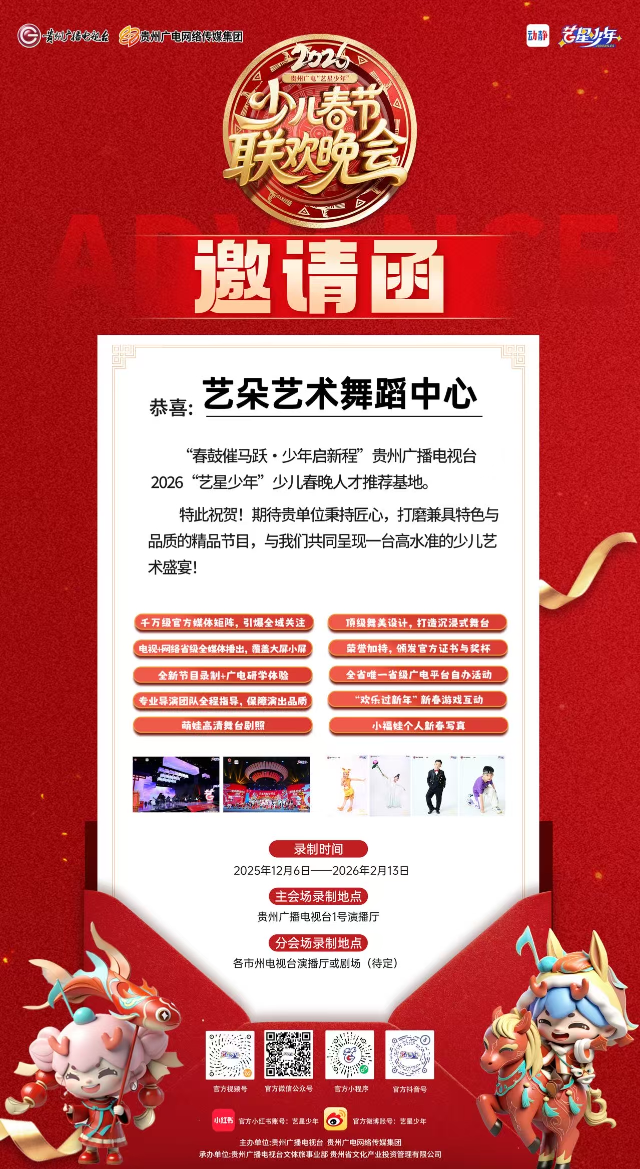 贵州广电2026“艺星少年”少儿春节大联欢活动不仅是一个展示才华的舞台,更是孩子们艺术道路上的重要里程碑。对于艺朵艺术的学员们来说,这既是一次挑战,也是一次难得的学习和成长机会。