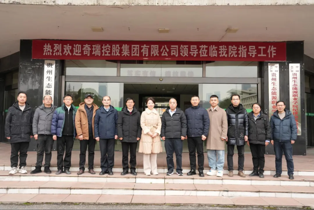 2026年1月22日,贵州生态能源职业学院与奇瑞控股集团有限公司在贵阳举行校企合作工作会暨共建产业学院签约仪式。奇瑞控股集团人力资源总监张东雅、奇瑞控股集团校招总监李伟,贵州生态能源职业学院党委书记夏忠胜、院长李正平参加会议并共同出席签约活动。