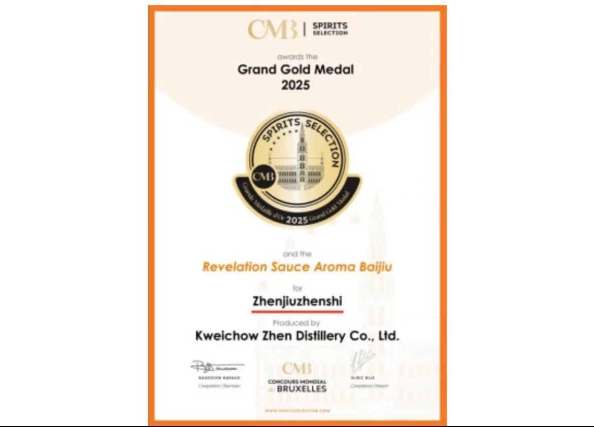 “珍酒·珍十”荣获2025布鲁塞尔国际烈性酒大奖赛大金奖