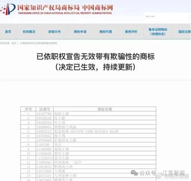 近日,国家知识产权局商标局在官网发布争议商标典型案例,以及持续更新系列宣告无效带有欺骗性的商标名单。其中,“白象多半袋”“120W”“德子土”等曾引发舆论争议的商标被作为无效商标典型案例,国家商标局还表示,对蛋、活动物等商品上欺骗性使用“土鸡”“土猪”文字的商标宣告无效。