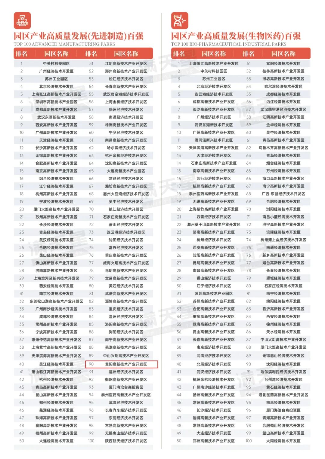 近日,赛迪顾问发布《2025年中国园区经济高质量发展研究》,公布了“园区高质量发展百强(2025)”名单,贵阳国家高新区上榜,排名69位,系贵州省唯一入围园区。同时公布“园区高质量发展(先进制造)百强”名单,贵阳国家高新区排名90位。