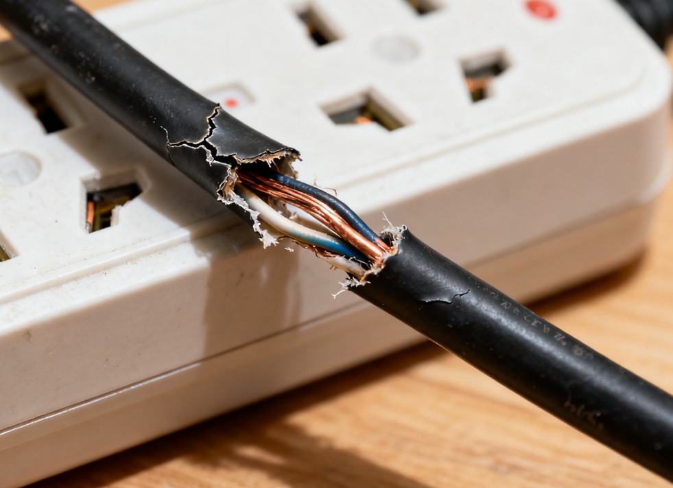 3.电源线破损:老化的插线板电源线可能出现“露铜”现象,即绝缘层破损,内部铜线暴露。这会增加短路风险,一旦发生短路,极易引发火灾。