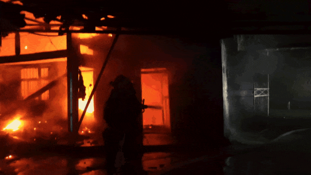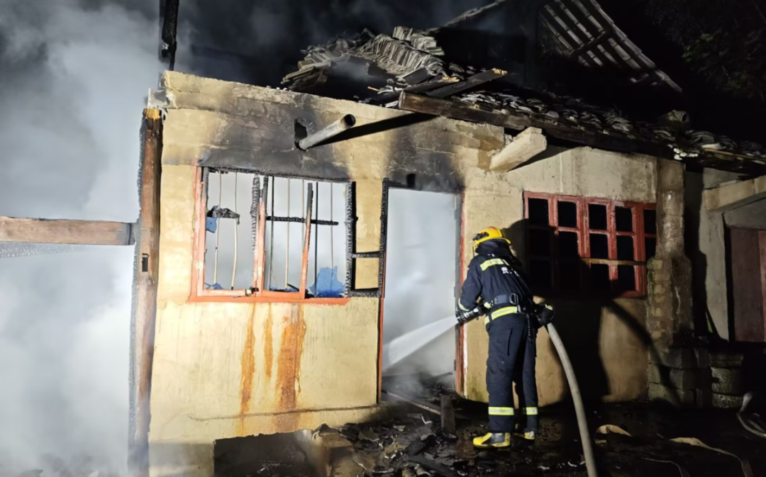 10月28日凌晨3时许,贵阳市开阳县冯三镇堕秧村一自建民房发生火灾,消防员接警后迅速抵达现场,经侦查发现,起火点为砖木结构自建房一楼卧室,现场有明火,且伴有浓烟火势正逐渐向一旁砖房蔓延。断电后,消防员立即展开扑救并成功将明火扑灭。