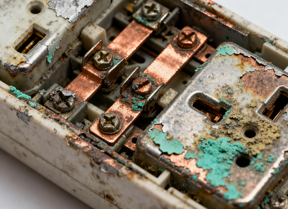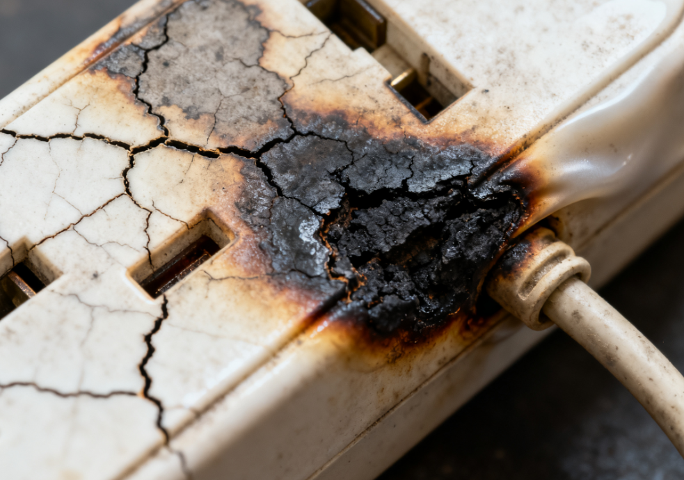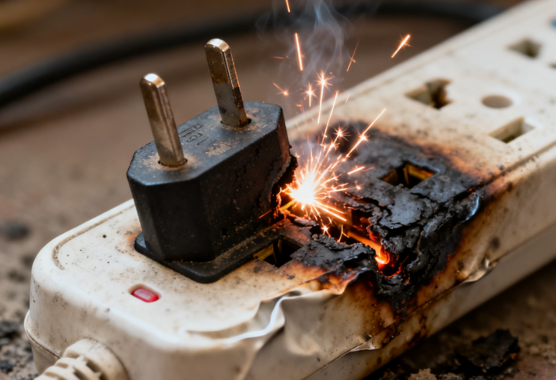 1.内部铜件老化:插线板使用年限过长(一般3-5年),内部铜件会逐渐老化,导致接触电阻增大。当电流通过时,电阻过大会产生大量热量,使插孔发黄、发黑,甚至引发短路起火。