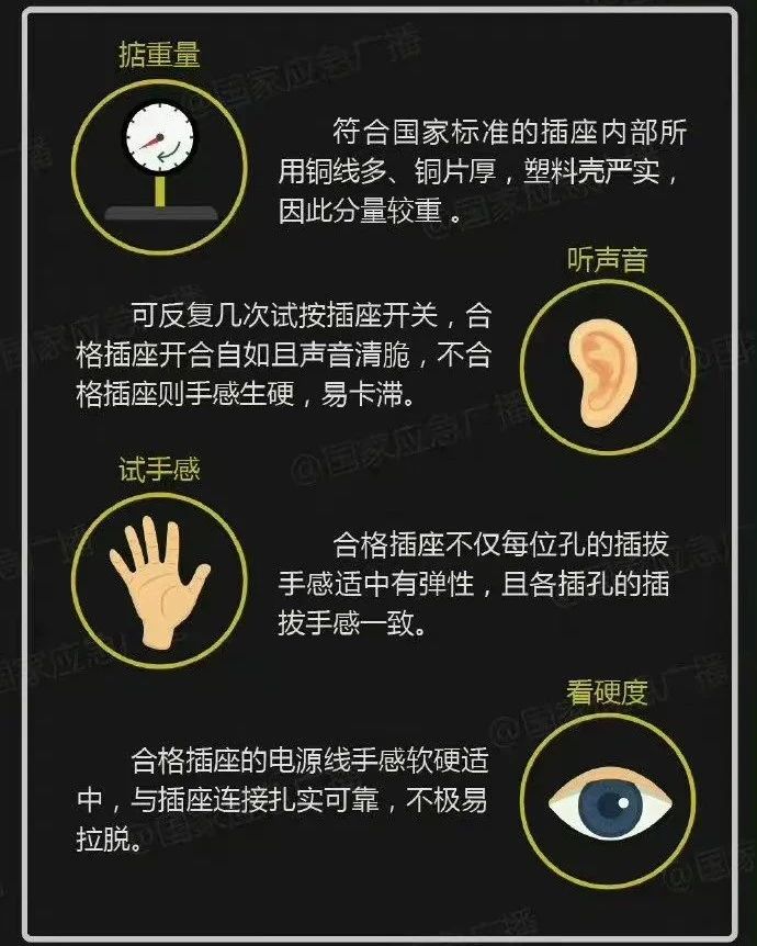 3.选购合格插线板:必须标有“3C认证”和插线板种类、插线板插孔处有防止意外的安全门、材质的耐火阻燃性能提高、电源线进一步加粗。