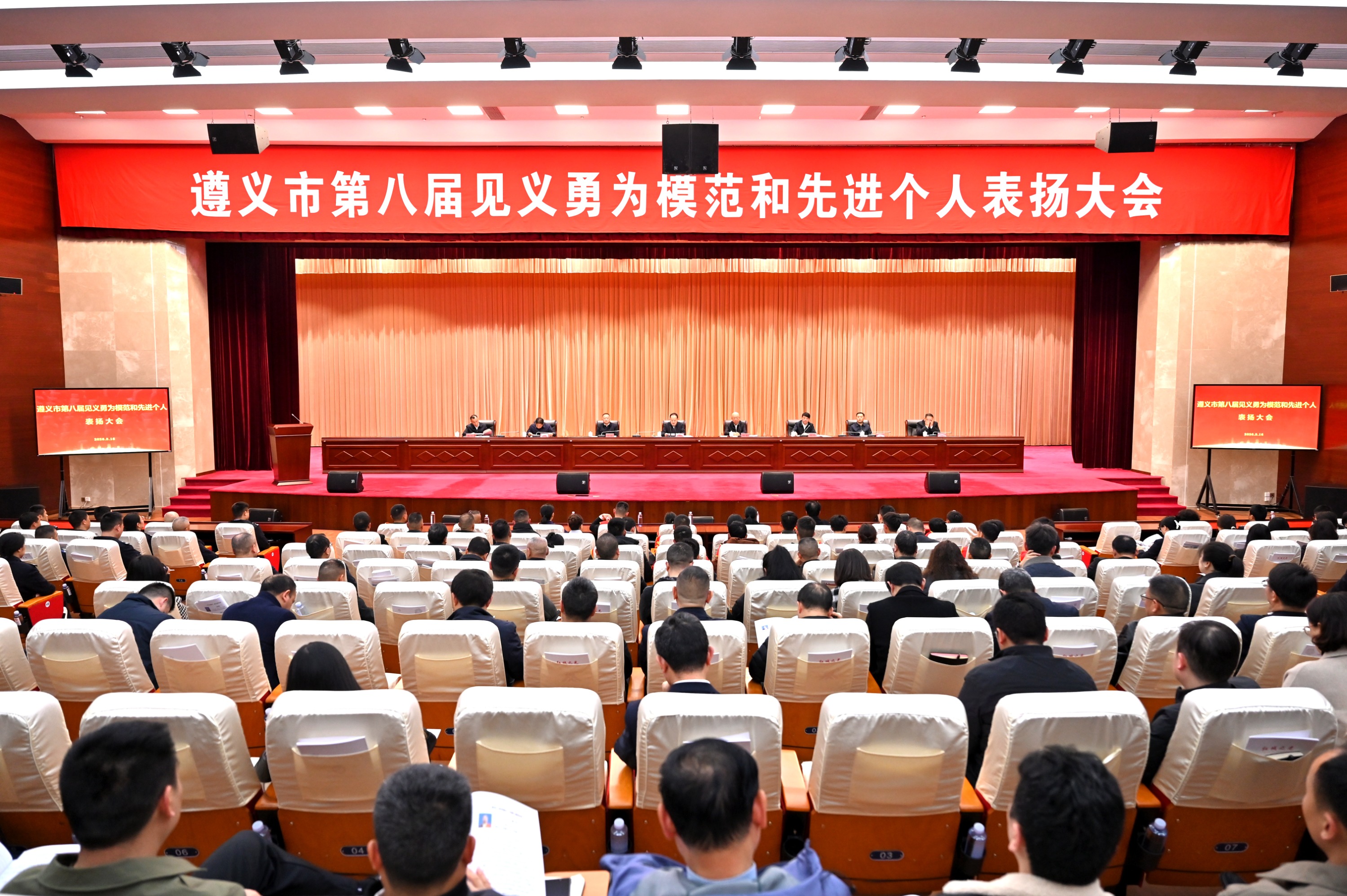 遵义,2026年3月16日下午,遵义市第八届见义勇为模范和先进个人表扬大会举行。30名来自黔北大地的平民英雄(模范8人、先进个人22人)在聚光灯下接受全城礼赞。