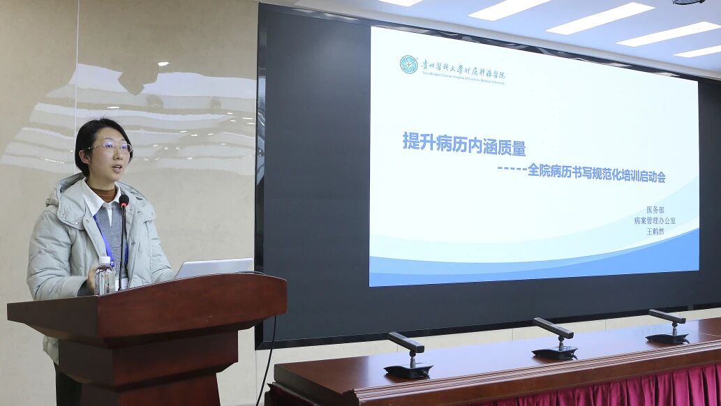 为进一步提升病历内涵质量、夯实医疗安全基础,近日,贵州医科大学附属肿瘤医院医务部病案管理办公室副主任王鹤然以《提升病历内涵质量——病历书写规范化培训》为题,开展了一场内容详实、贴近临床的专题授课。培训系统梳理了病历书写中的常见问题与关键环节,推动病历从“记录工具”向“质量载体”转变,为全院医疗质量持续提升注入规范力量。