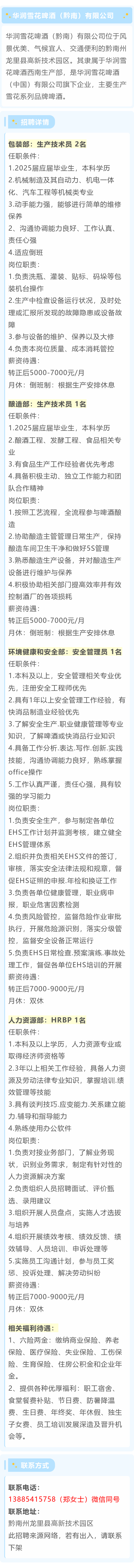 华润雪花啤酒(中国)有限公司贵州多岗招聘!月薪5000~9000元!六险两金!