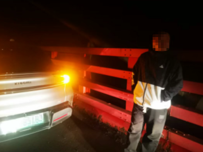 民警立即在桥面展开搜寻,很快发现惊险一幕——一名男子竟悬挂在大桥护栏外,身体悬空,随时有坠落危险,情况十分危急!经民警耐心安抚、细致劝说,男子情绪逐渐平稳。最终,在民警的帮助下,男子安全返回桥面。随后,民警将男子及车辆引导至化屋收费站广场妥善安置。