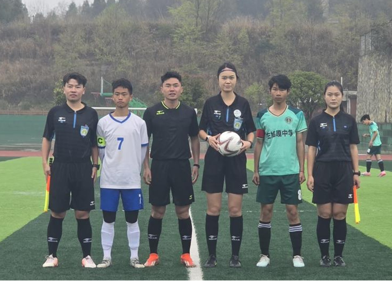 支教老师白冰琦(国家一级足球裁判员)执裁“县长杯”初中组男子决赛