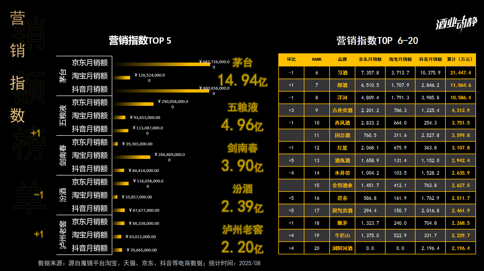 九月,中国白酒行业进入了传统旺季的前奏阶段,尽管面临市场的不确定性,行业却呈现出新的竞争态势。茅台、五粮液继续稳居电商市场的前列,而汾酒的显著上升无疑成为九月市场的一大亮点。
